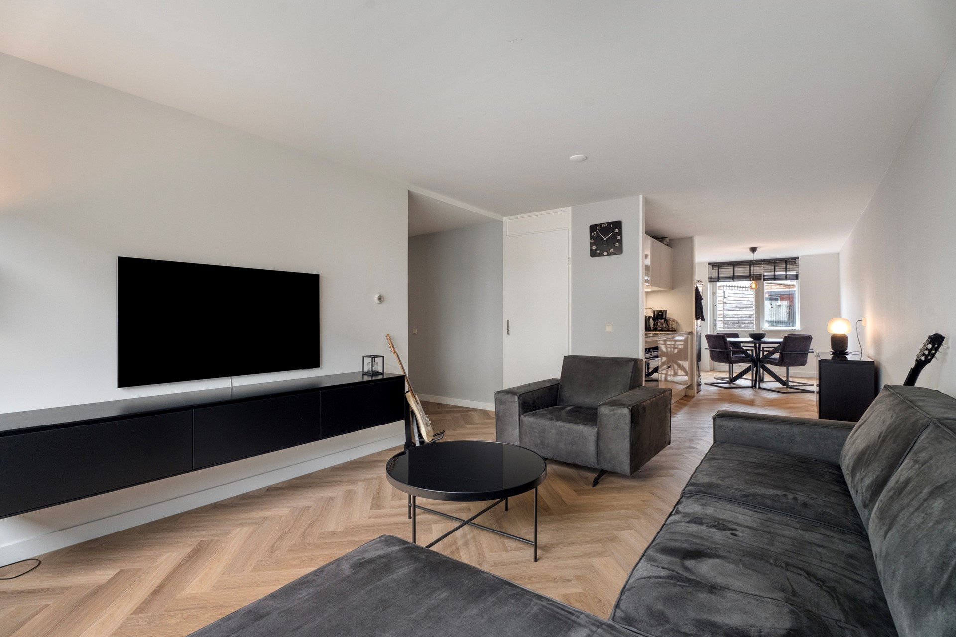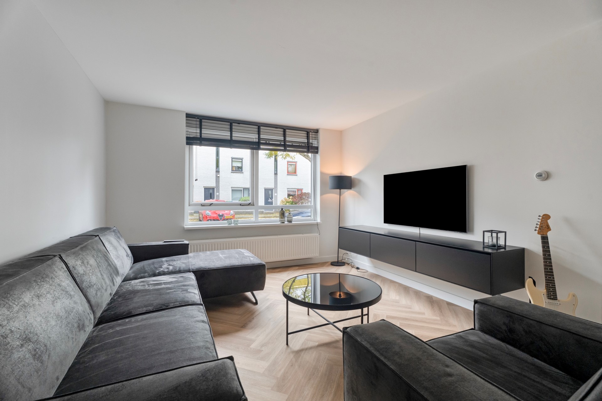 De woonkamer is een lichte en uitnodigende ruimte waar direct een gevoel van rust en comfort ontstaat. De grote ramen zorgen voor een overvloed aan daglicht en bieden een prettig uitzicht op de omgeving.