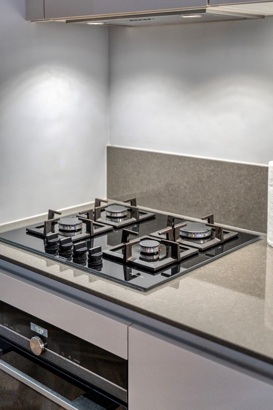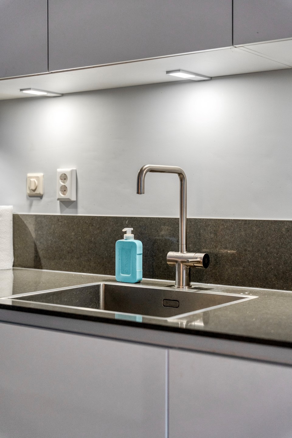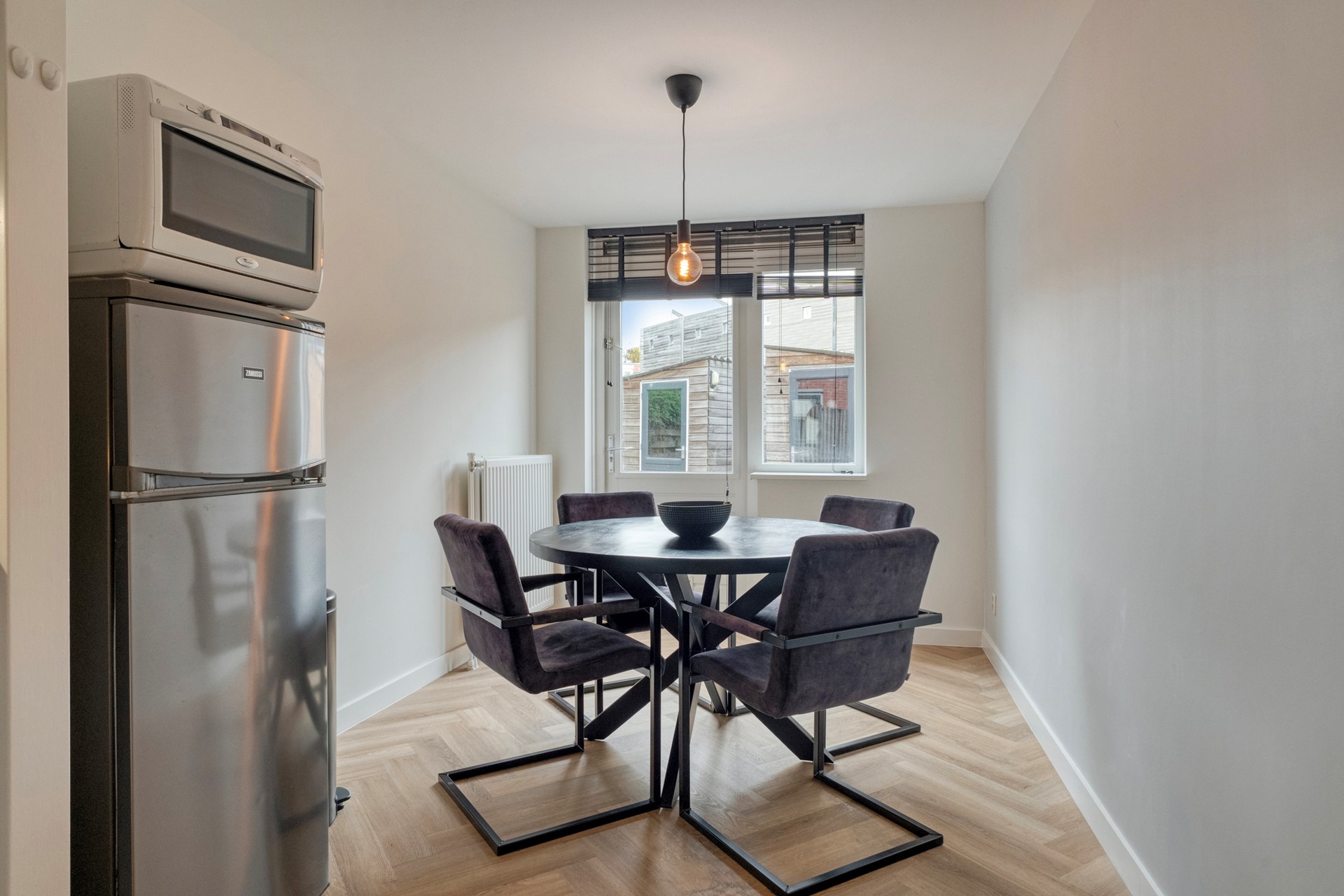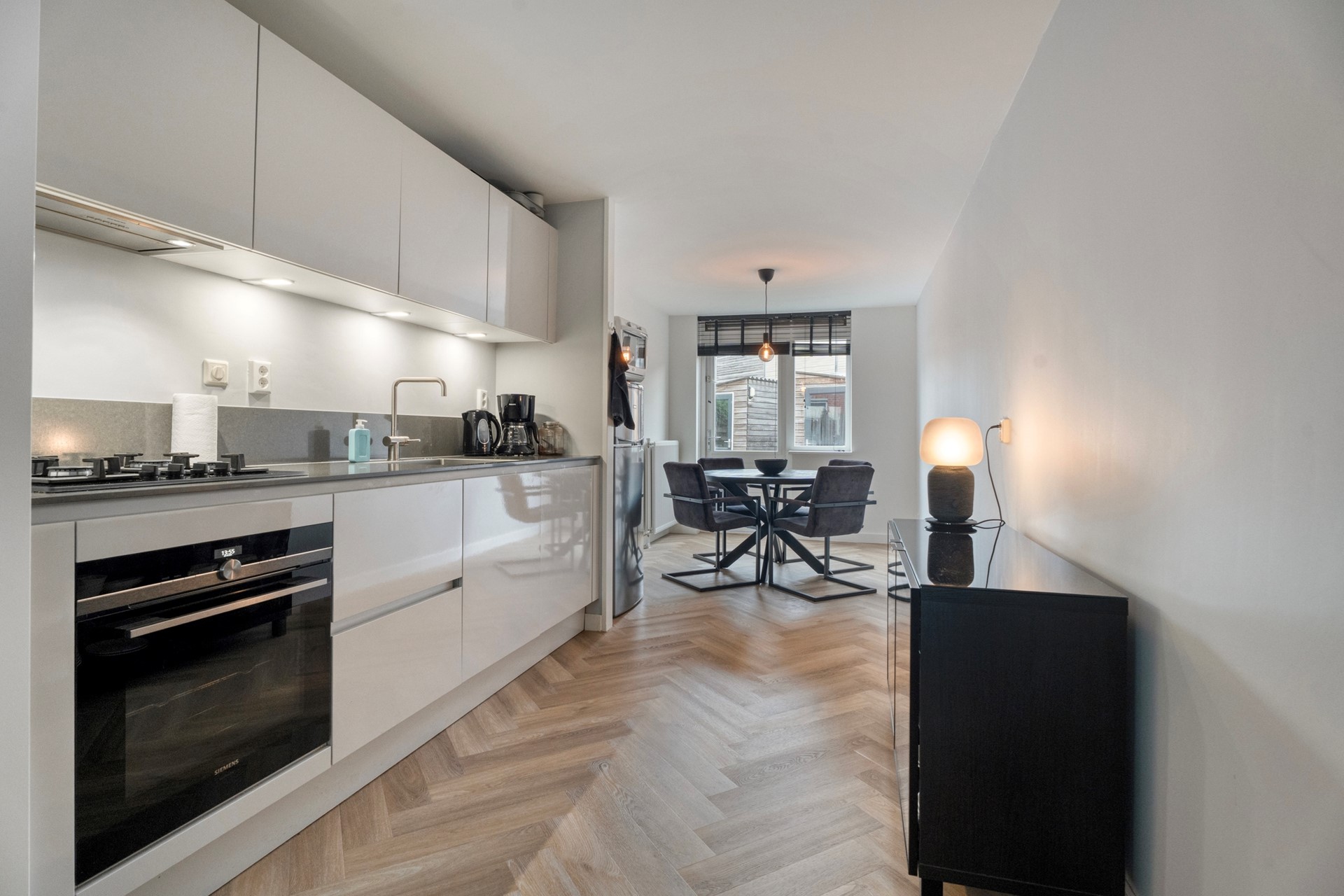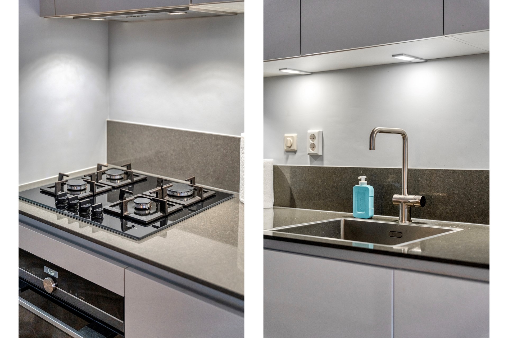 De keuken vormt het hart van het appartement: modern, stijlvol en met voldoende ruimte om te koken en tegelijk contact te houden met je gasten. Aan de ene zijde grenst een gezellige eethoek, aan de andere kant een fijne, lichte woonkamer die comfortabel en ruim aanvoelt.
