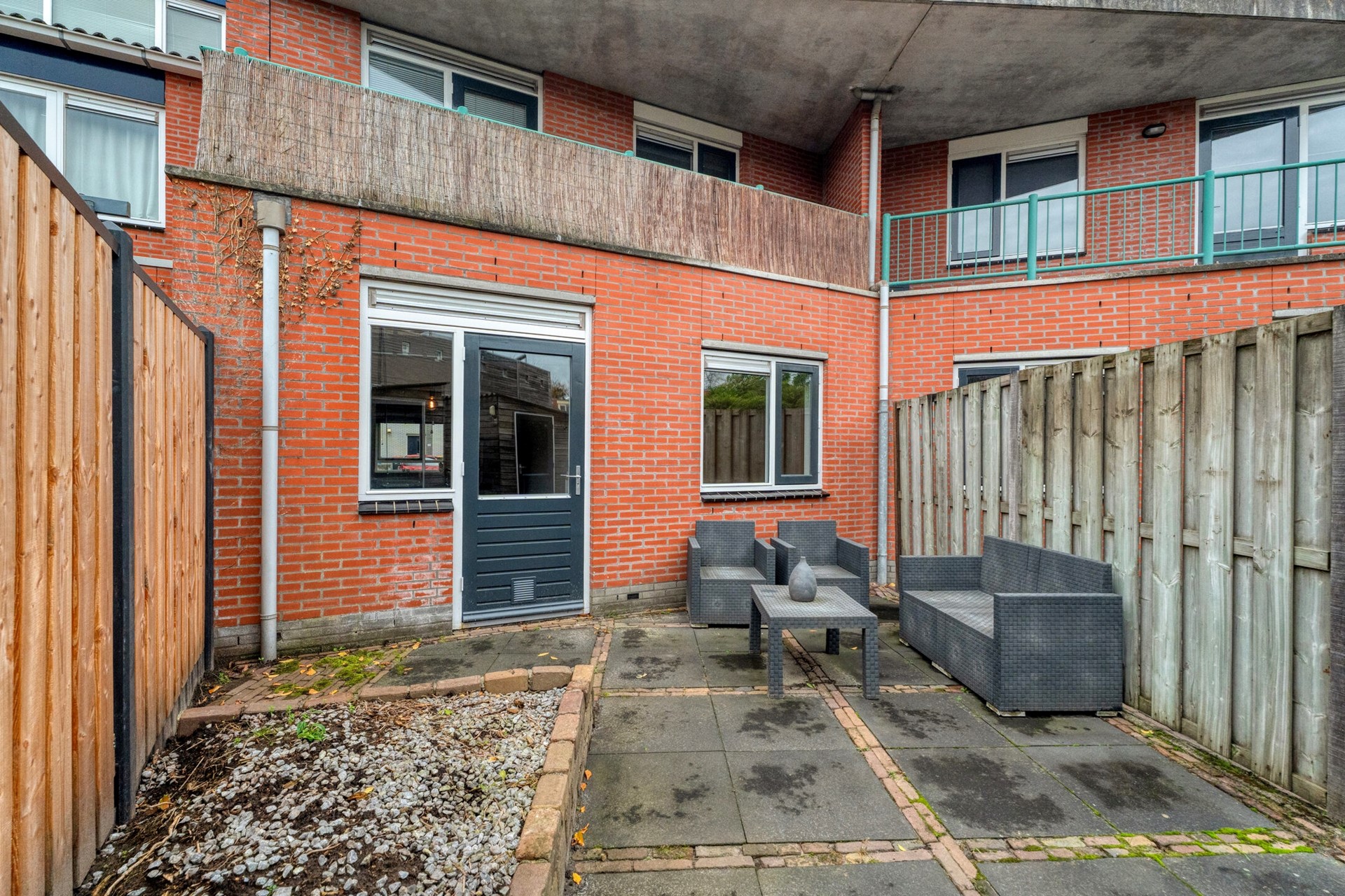De tuin biedt voldoende ruimte voor een zitje of eettafel, en dankzij de ligging op de begane grond is de buitenruimte eenvoudig toegankelijk via de eetkamer. De bovenliggende balkons zorgen voor een gedeeltelijk overdekt terrasgevoel, waardoor je ook bij minder mooi weer beschut buiten kunt zitten.