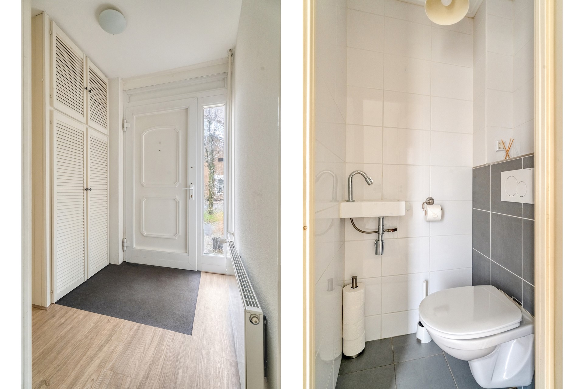 Via de entree kom je binnen in de hal met toegang tot het toilet, de meterkast en een vaste kast. Vanuit de hal loop je door naar de ruime woonkamer. Deze royale leefruimte is prettig licht dankzij de grote raampartijen en biedt volop mogelijkheden voor een comfortabele zit- en eethoek.