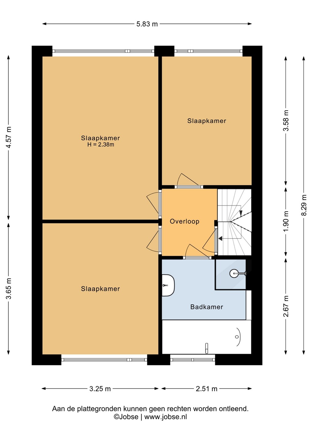 Via de trap vanuit de woonkamer komt u uit op de overloop, die toegang biedt tot alle vertrekken op deze verdieping. Hier bevinden zich drie slaapkamers, waarvan twee ruime kamers en een derde kamer die zich ook uitstekend leent als werk- of hobbyruimte. Alle slaapkamers zijn prettig van formaat, beschikken over voldoende daglicht en zijn voorzien van elektrische rolluiken (2025).