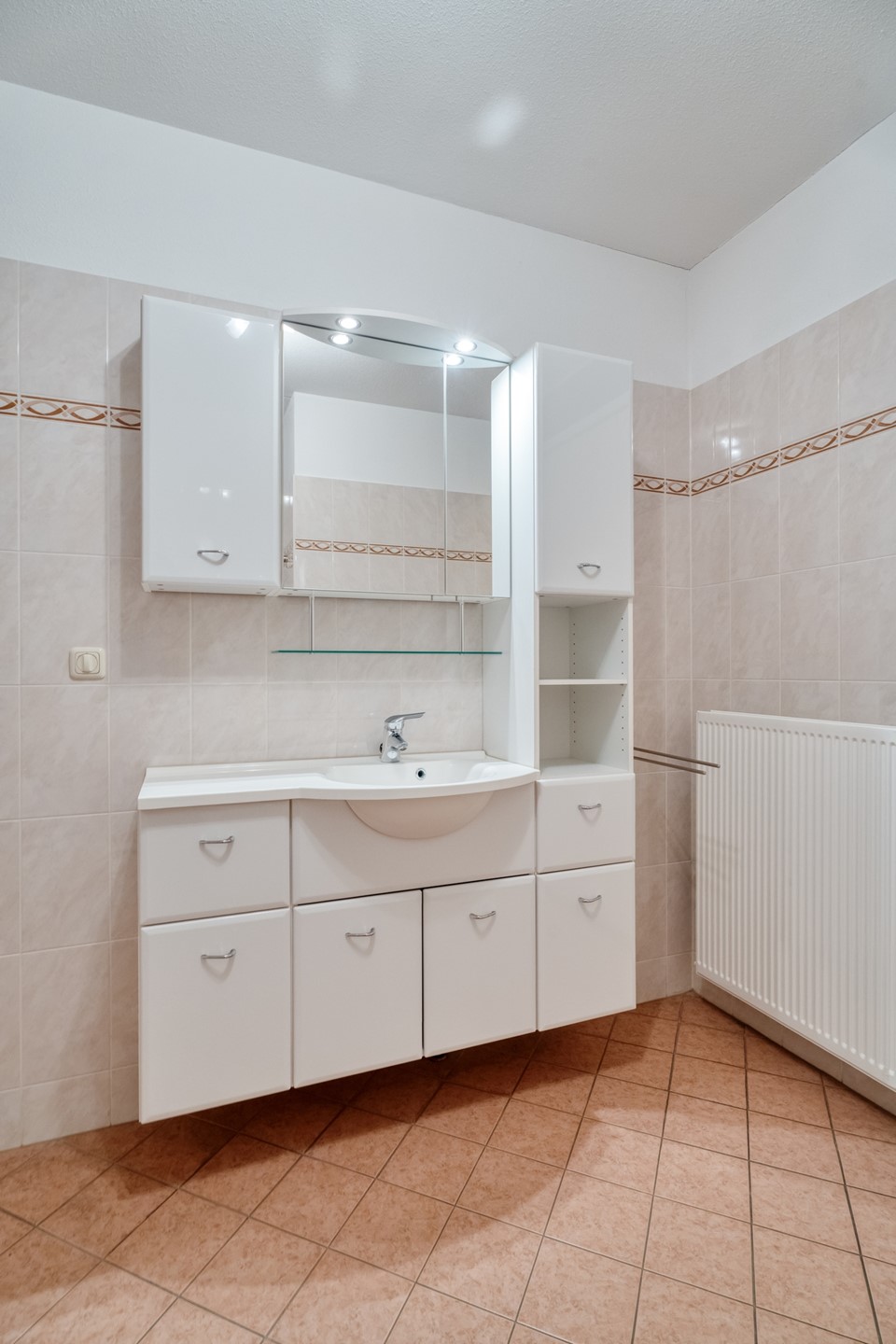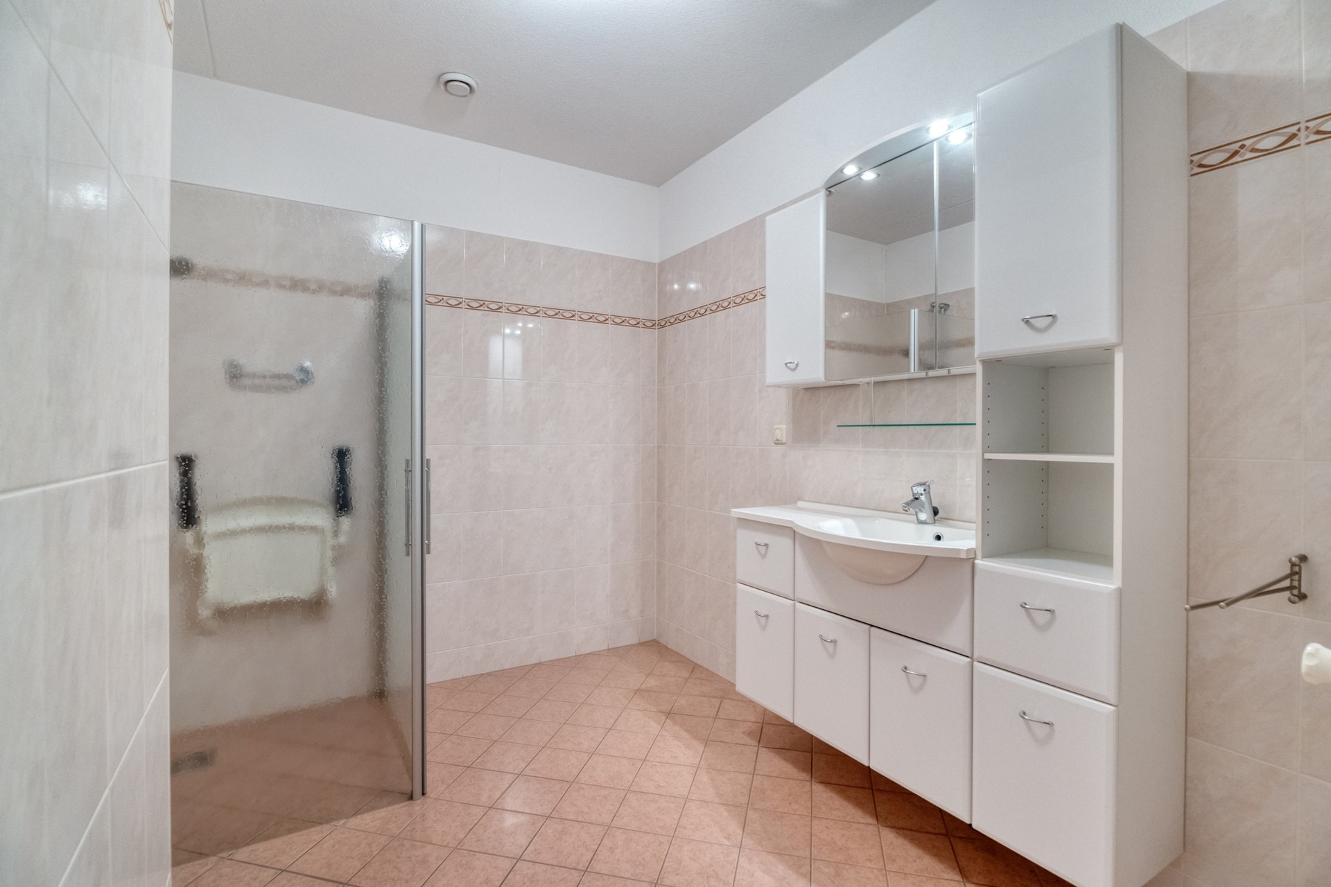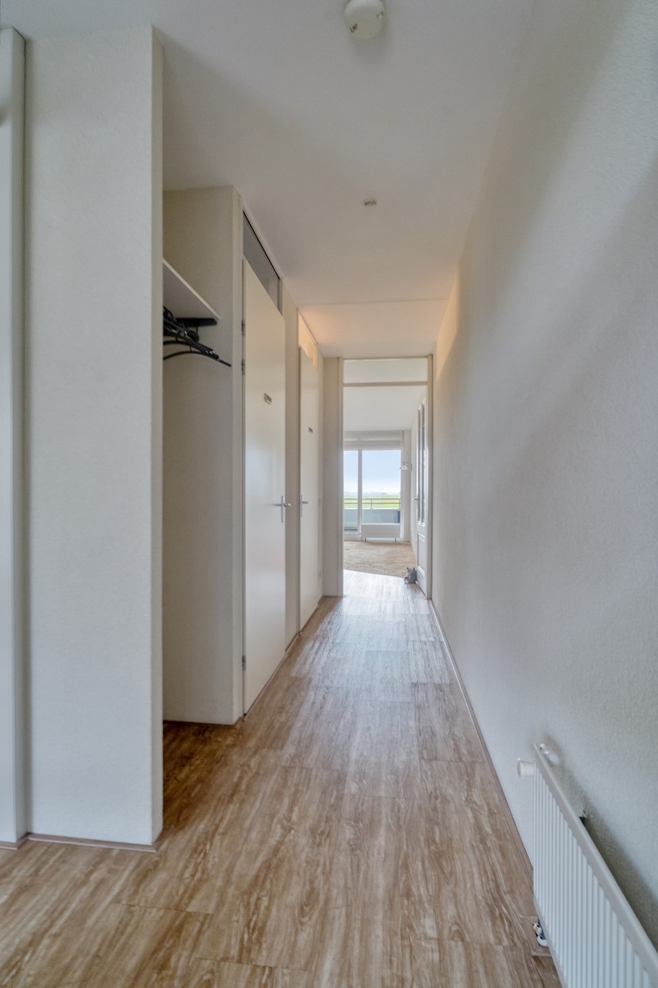 Daarnaast beschikt het appartement over extra bergruimte dankzij meerdere ingebouwde kasten elders in de woning.
