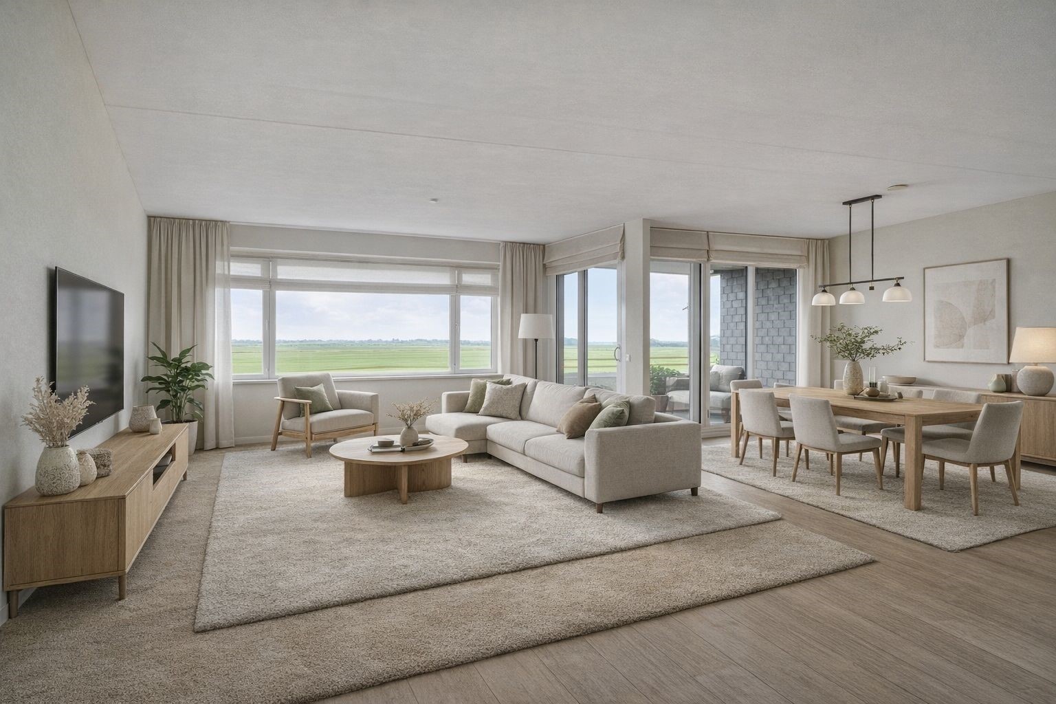 Aan de rand van Spakenburg ligt dit ruime appartement op de eerste etage, waar rust en ruimte de hoofdrol spelen. Hier geniet je elke dag vanuit de woonkamer en de serre van een weids vergezicht over de weilanden – een uitzicht dat nooit verveelt.