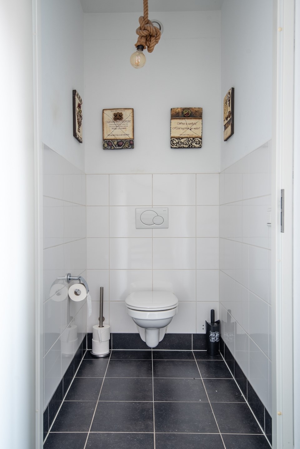 Op de eerste verdieping vind je drie ruime slaapkamers. De moderne badkamer is voorzien van een ligbad, dubbele wastafel en douche. Daarnaast is er een separaat toilet aanwezig, bereikbaar via de overloop.