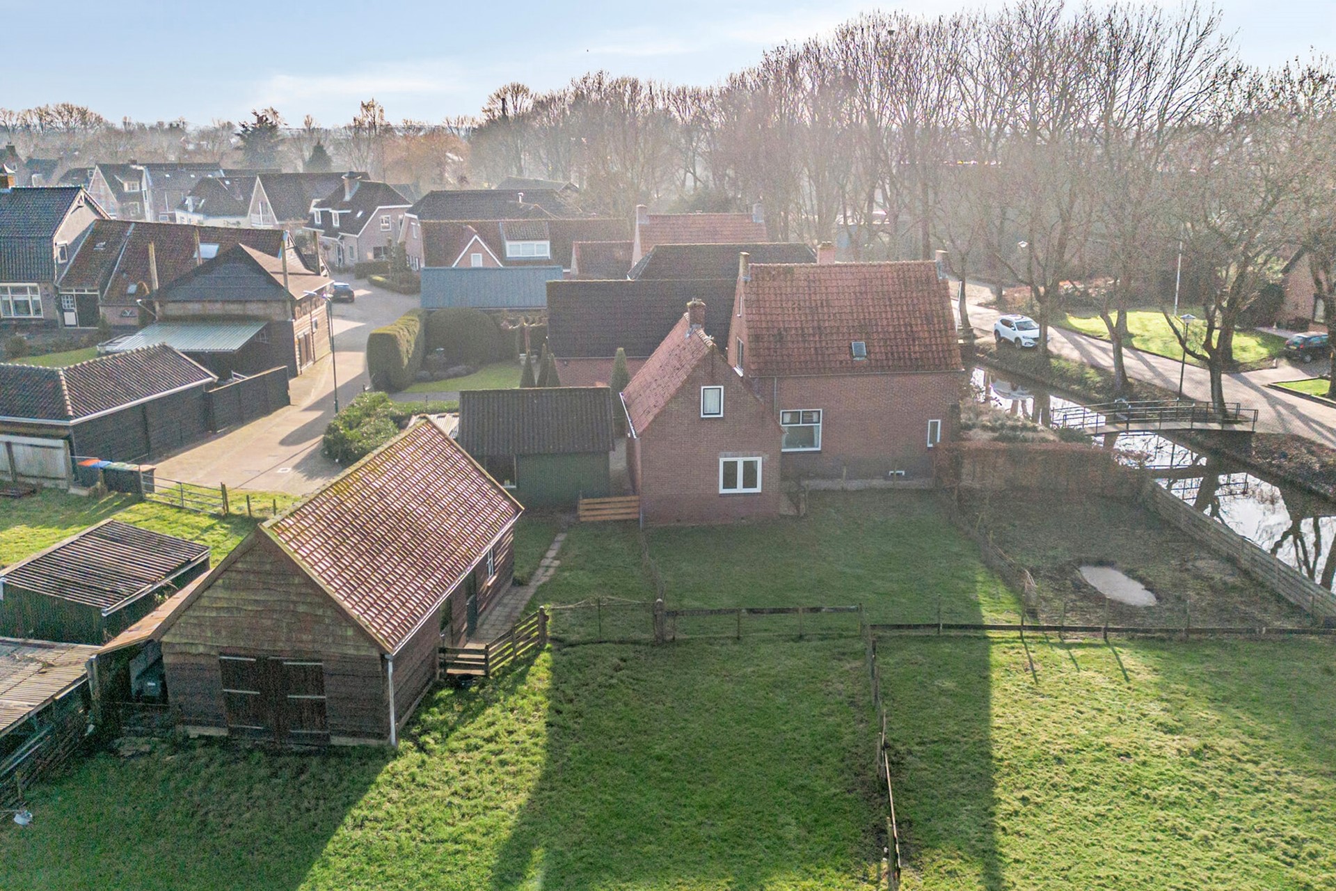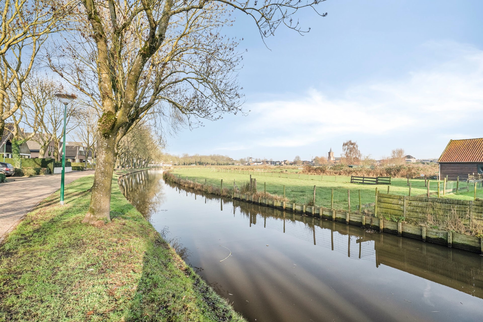 Burgwal 23 ligt op een plek waar vrijheid, historie en landschap samenkomen. Een zeldzame woonlocatie, direct grenzend aan de Stadsweiden van Bunschoten, met een eigen weiland dat naadloos overloopt in het open landschap. Hier woon je niet naast het uitzicht, maar erin.