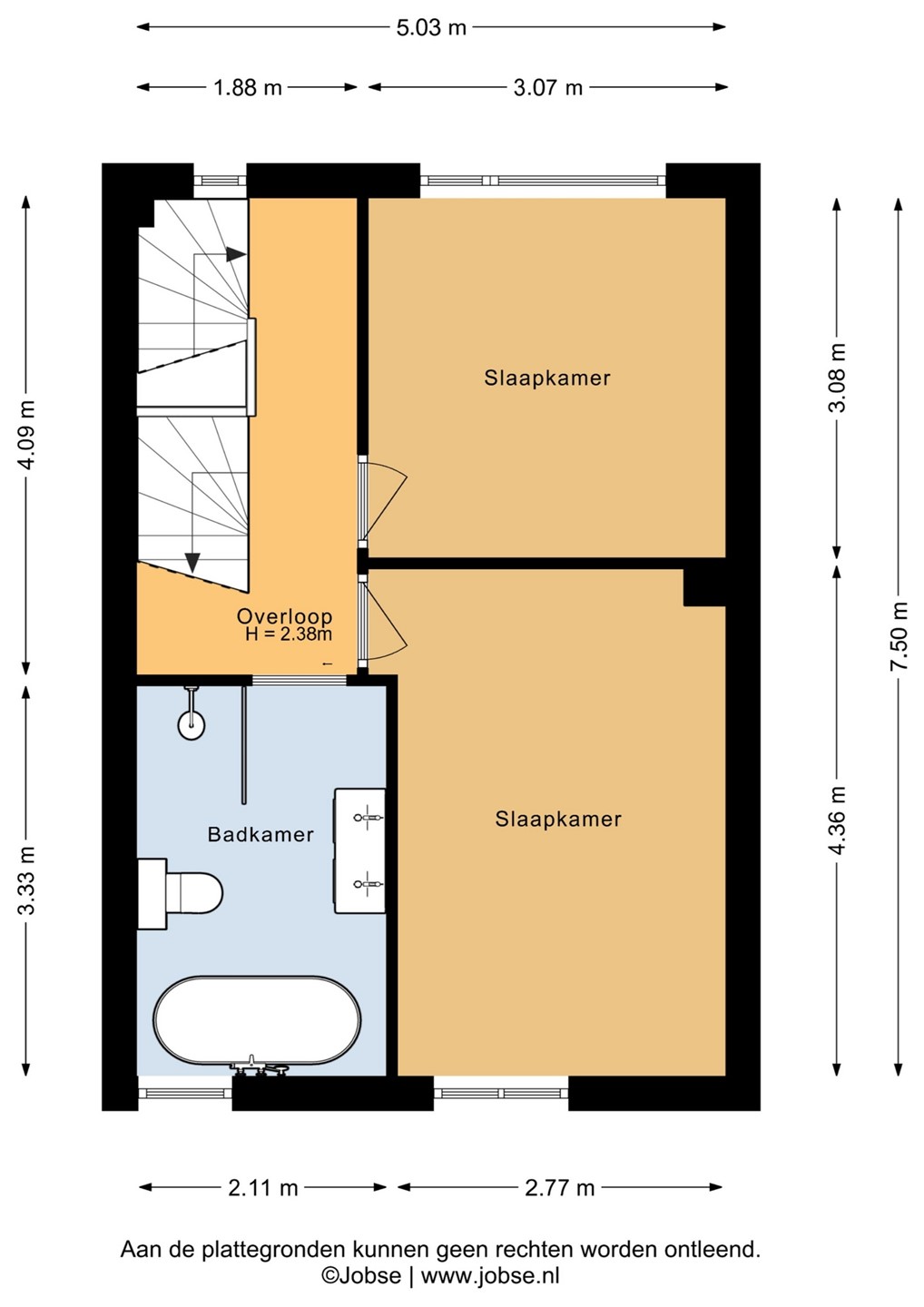 Via de overloop heeft u toegang tot twee ruime slaapkamers, beide voorzien van een prettige lichtinval. De kamers zijn goed in te delen en geschikt als slaapkamer, werkkamer of hobbyruimte.