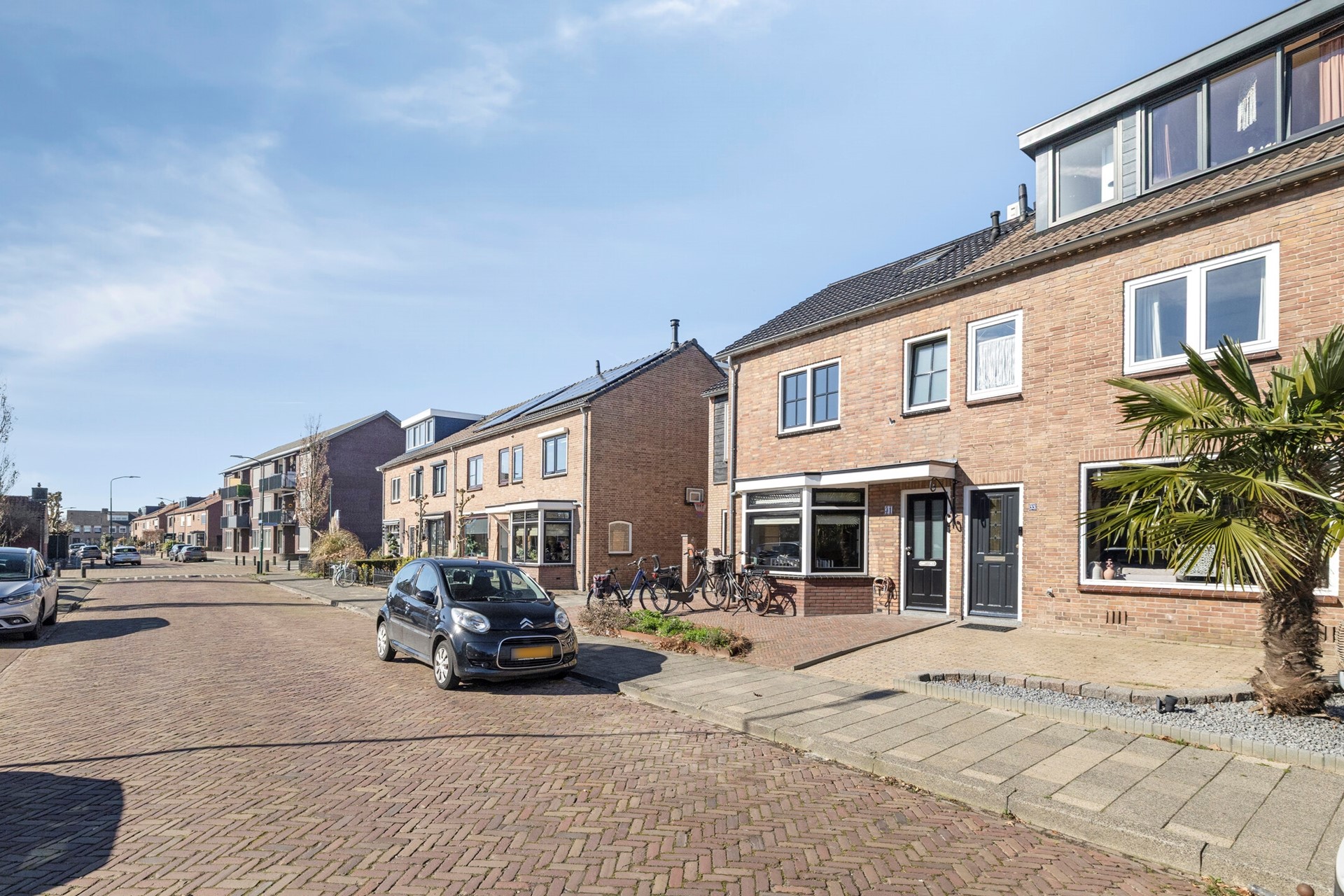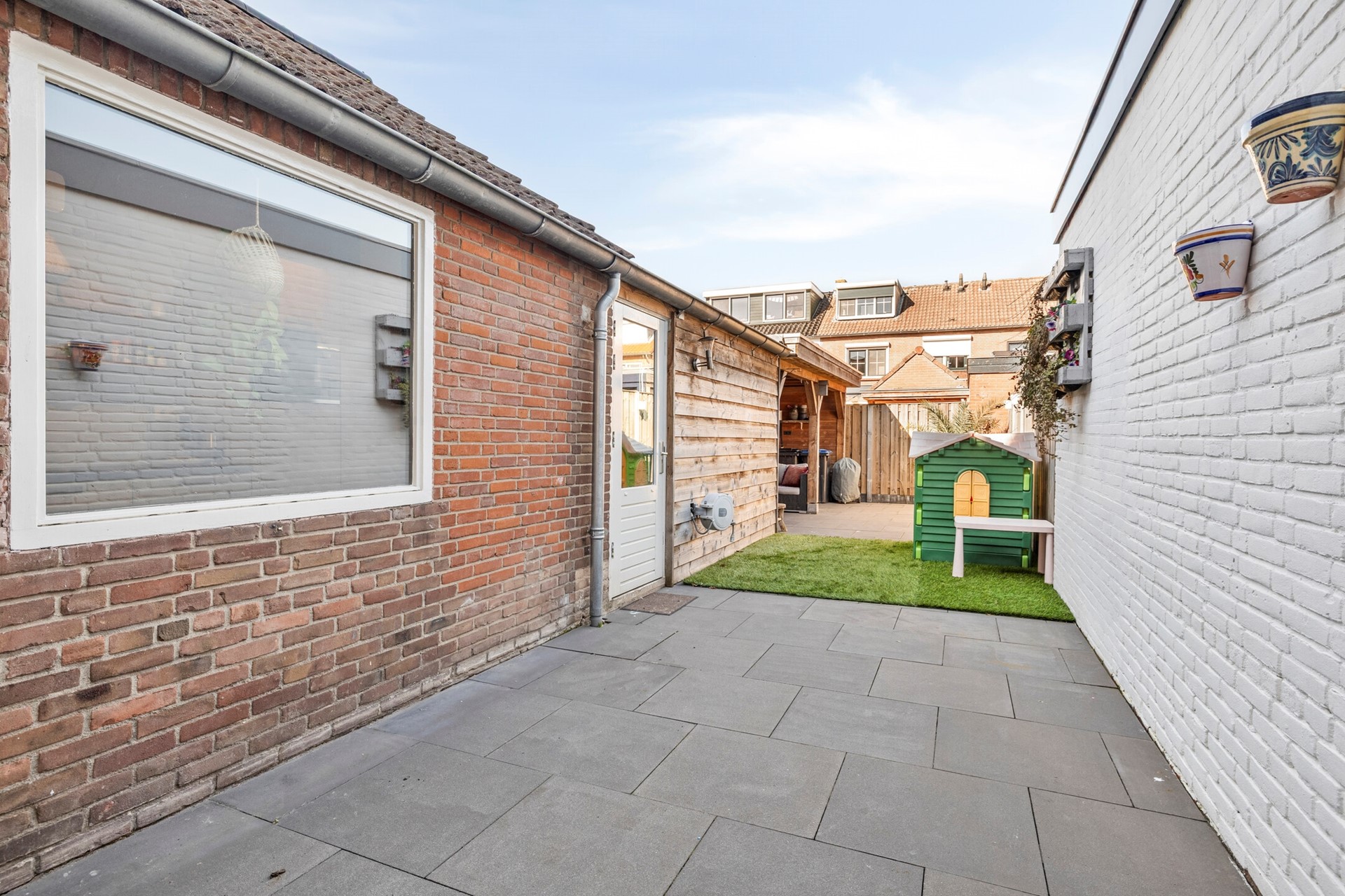 Buiten is het minstens zo aantrekkelijk. De achtertuin ligt op het westen en strekt zich uit over circa veertien meter, waardoor je hier de hele middag en avond van de zon kunt genieten. Achterin de tuin vind je een sfeervolle veranda, een plek waar lange zomeravonden vanzelf ontstaan en waar het net zo fijn is om beschut te zitten wanneer de temperatuur wat zakt.