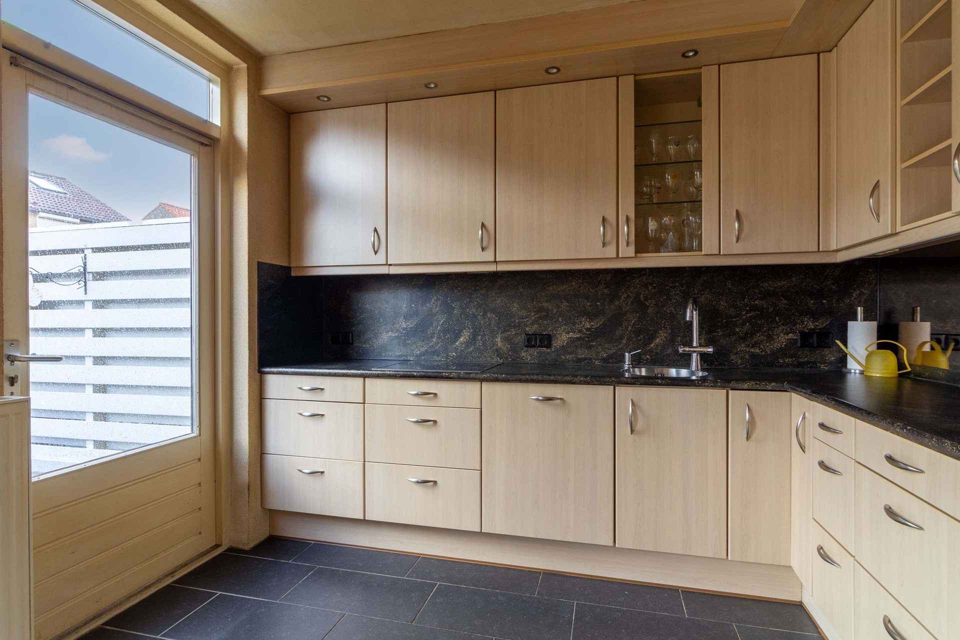 Achterin de woning bevindt zich de keuken, praktisch ingedeeld en voorzien van de benodigde inbouwapparatuur.