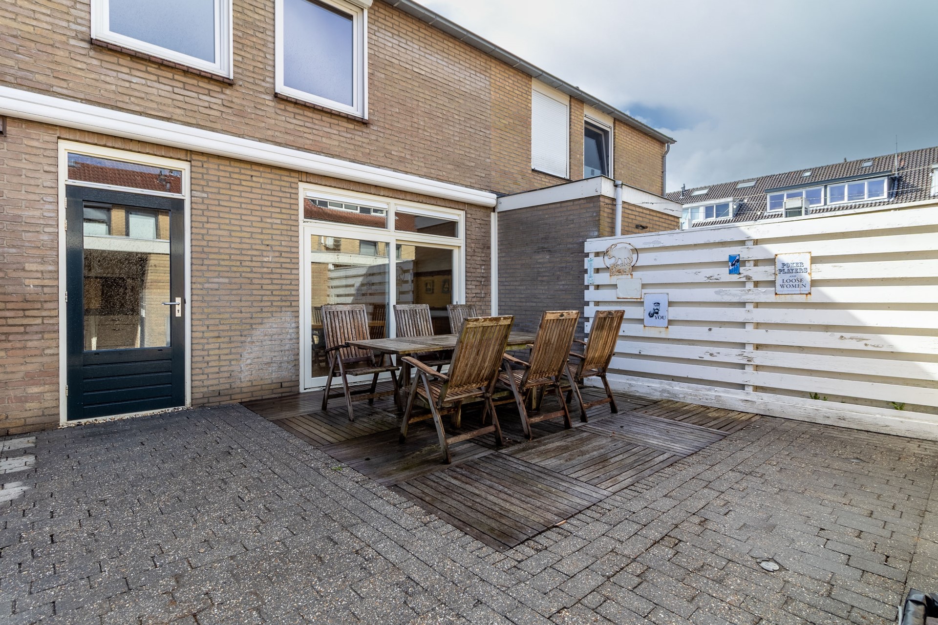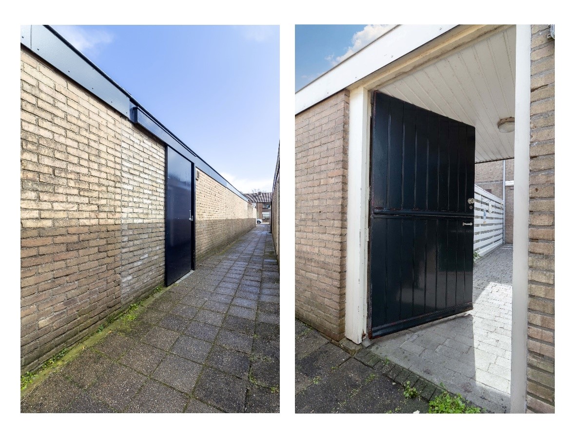 Achterin de tuin bevindt zich een praktische berging, ideaal voor fietsen en extra opslag. Daarnaast is de tuin bereikbaar via een achterom, wat het geheel extra comfortabel en functioneel maakt.