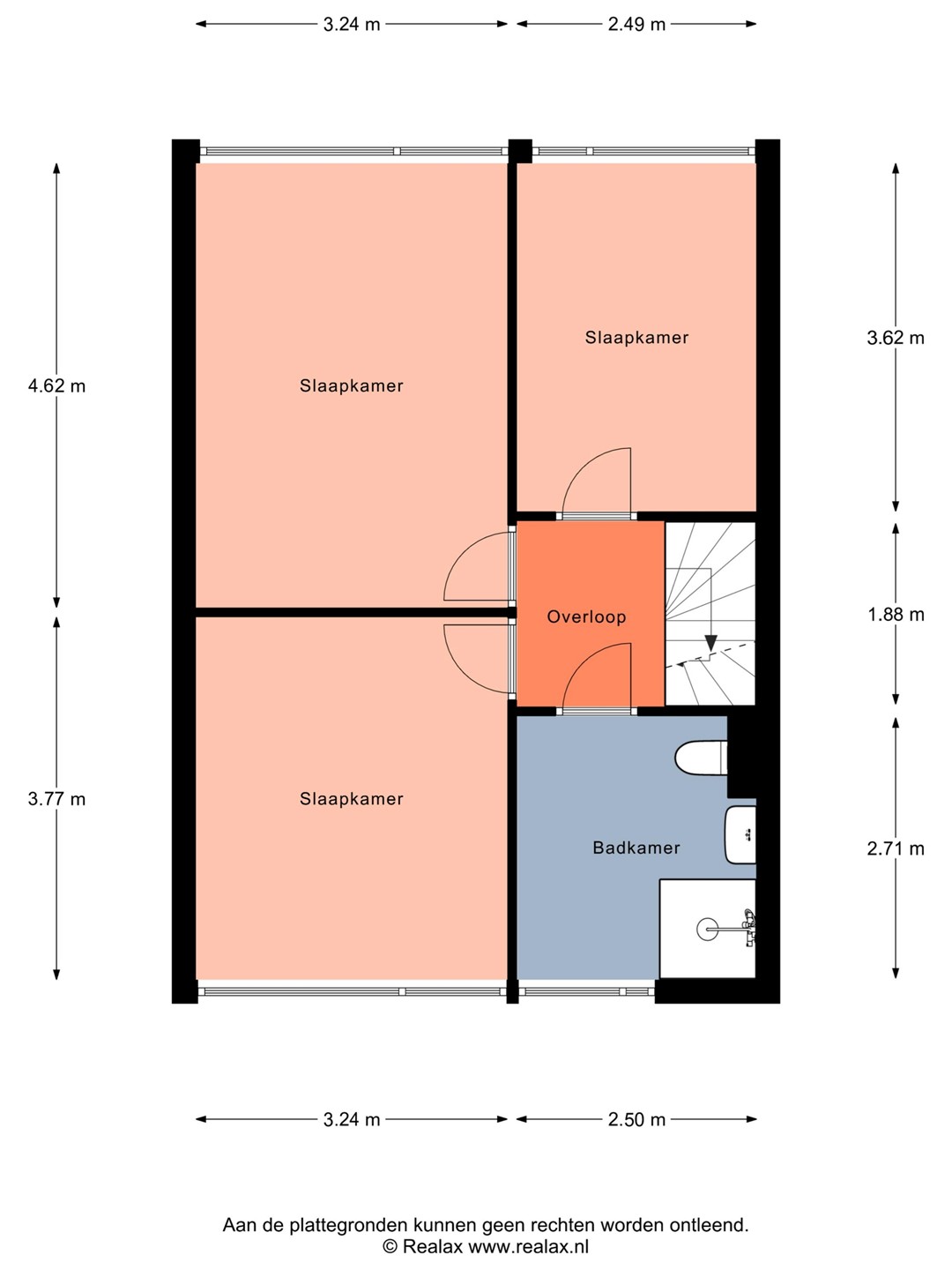Via de vaste trap bereikt u de overloop die toegang biedt tot drie slaapkamers en de badkamer.