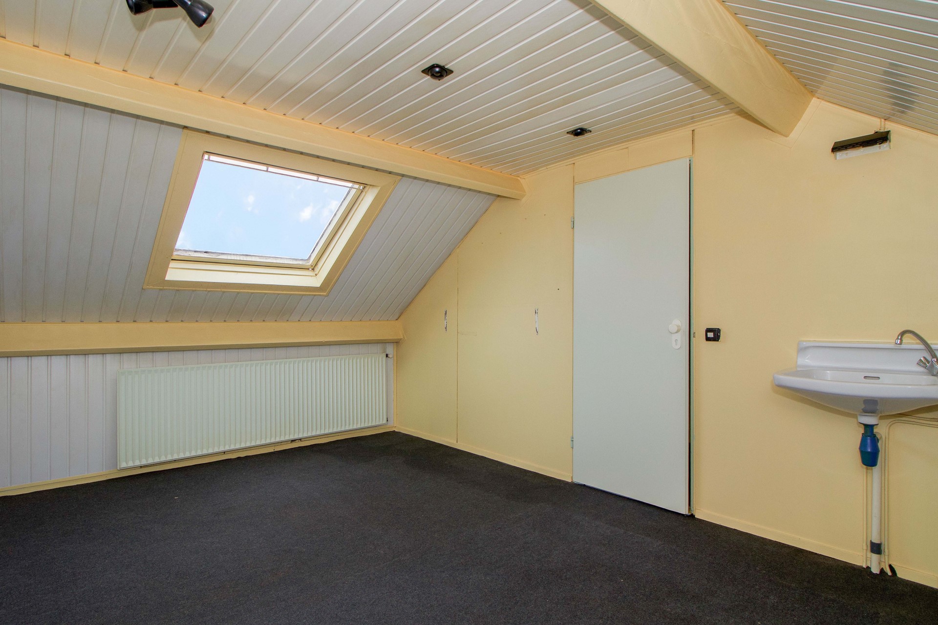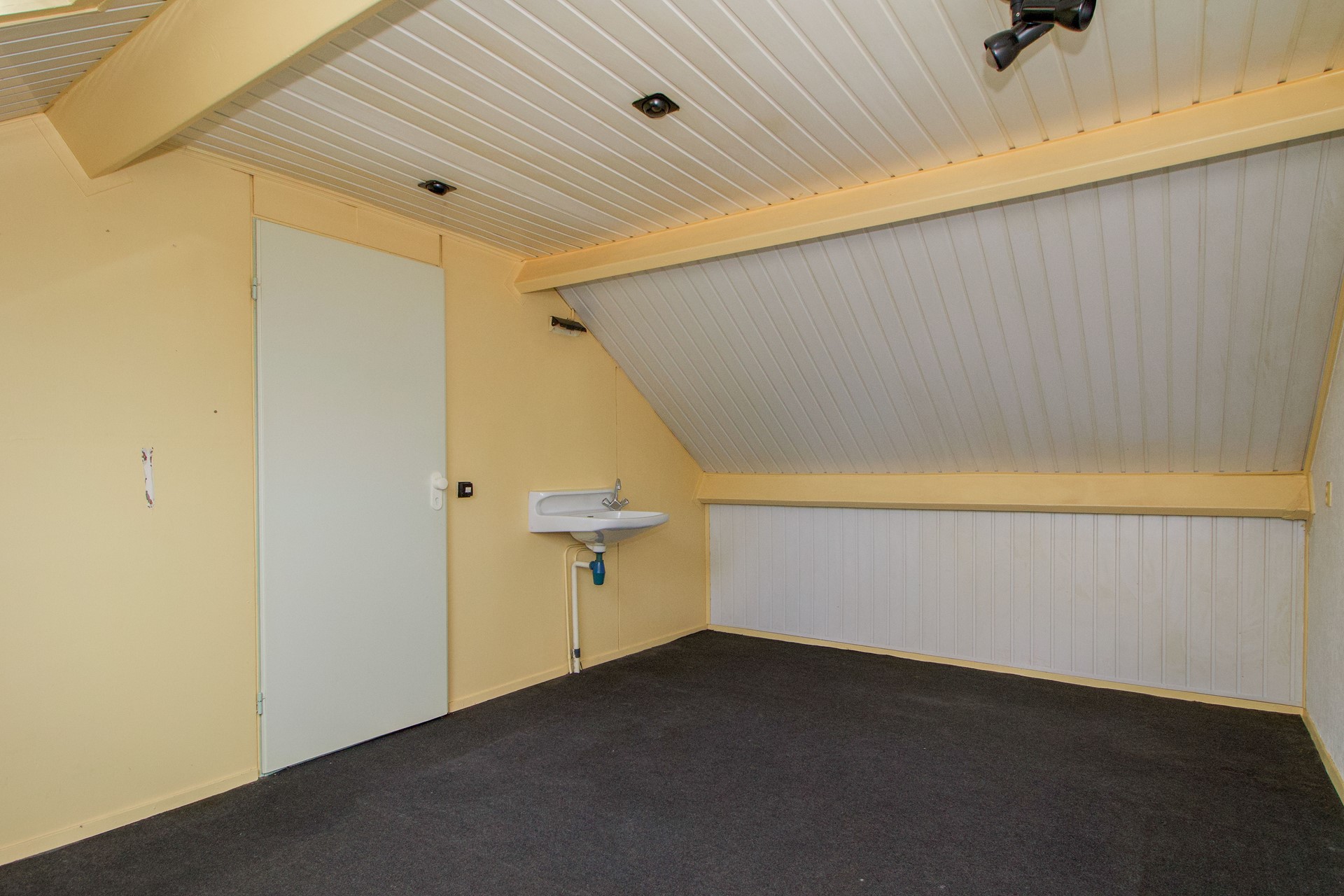 Via de vaste trap bereikt u de tweede verdieping. Vanaf de overloop heeft u toegang tot een royale slaapkamer, voorzien van daglicht en voldoende ruimte voor een tweepersoonsbed of werkhoek.