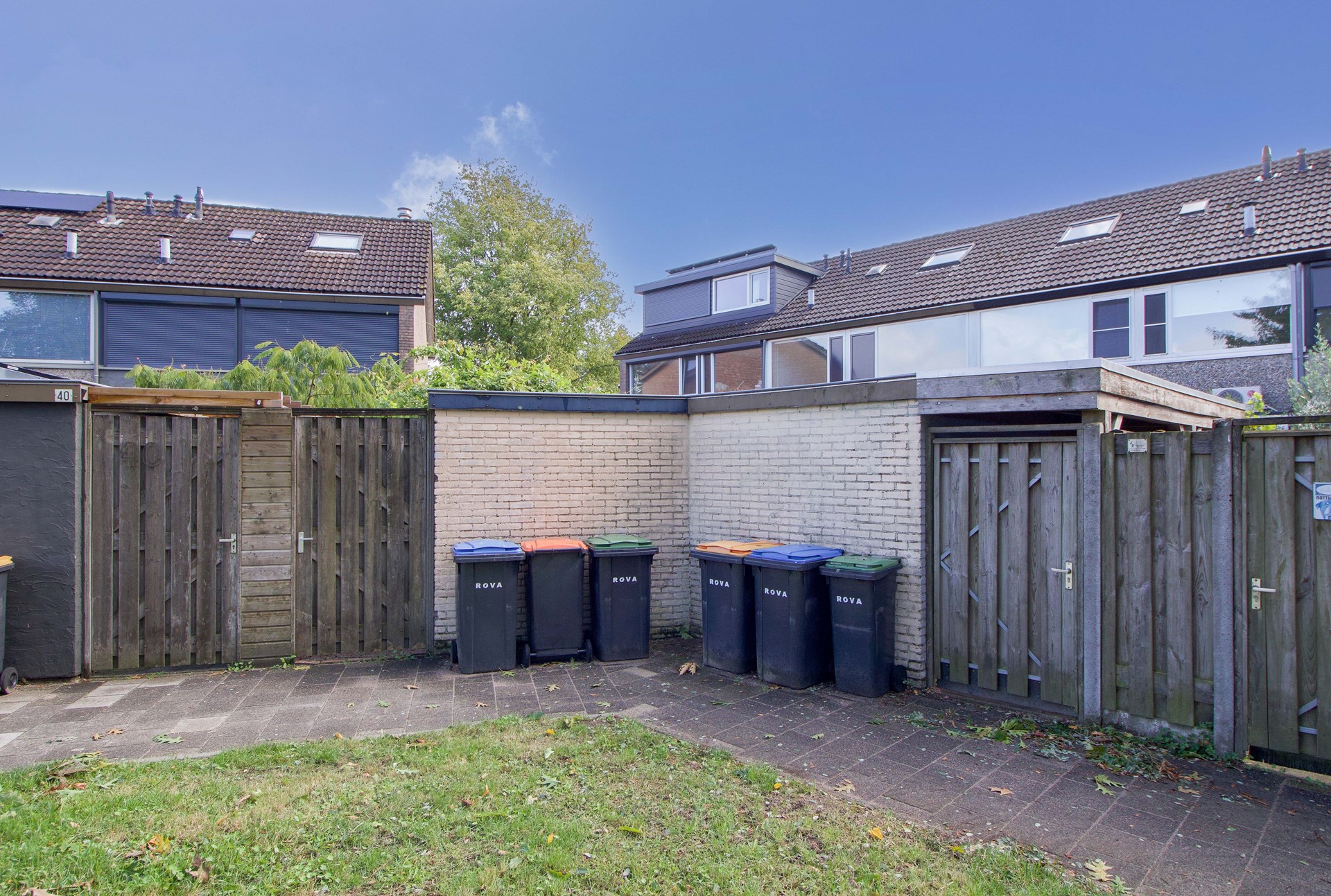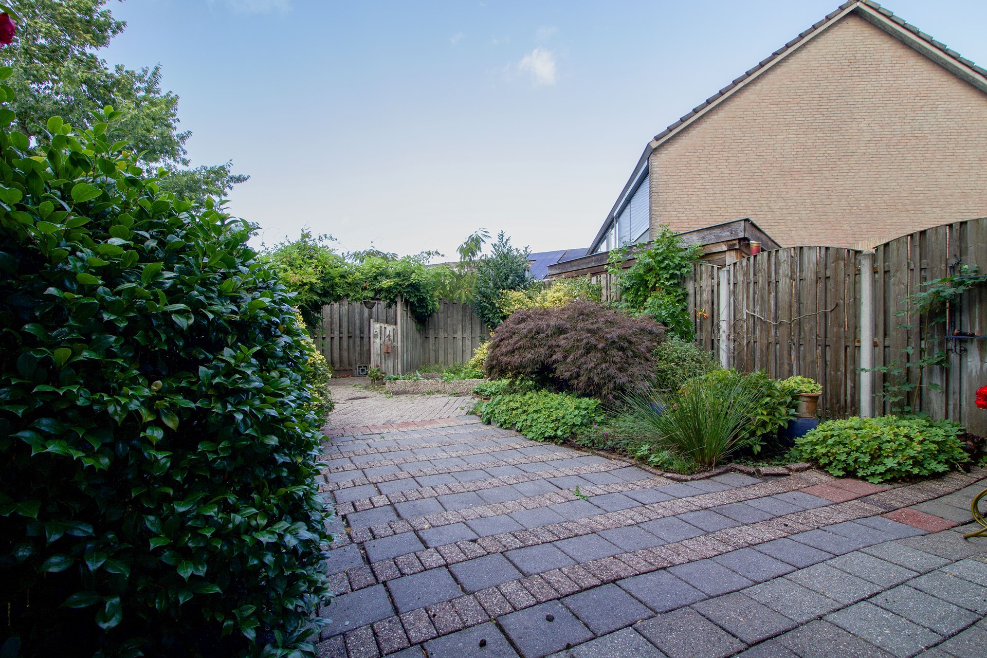 De woning beschikt over een ruime en onderhoudsvriendelijke achtertuin, grotendeels bestraat en voorzien van diverse groene borders en struiken. Hierdoor is er een fijne combinatie van groen en praktisch gebruik. De tuin is gelegen op het noord westen, maar dankzij de diepte en open ligging is er voldoende zon gedurende de dag.