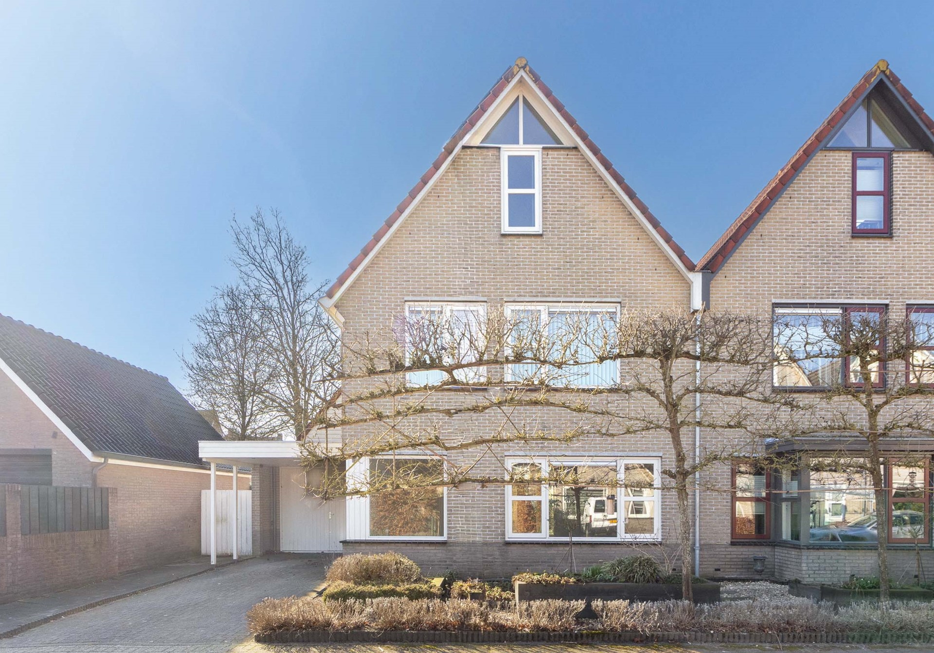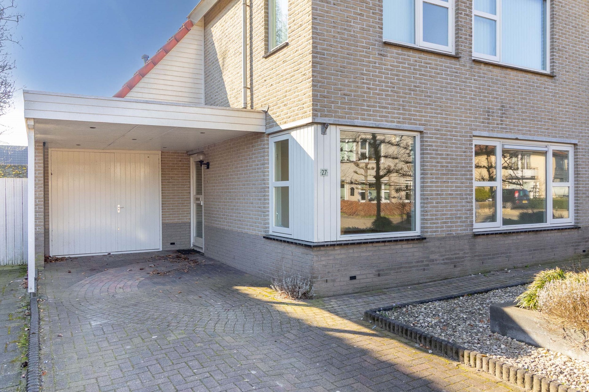 Dankzij de ruime oprit met carport en toegang tot de garage is er volop parkeergelegenheid op eigen terrein.