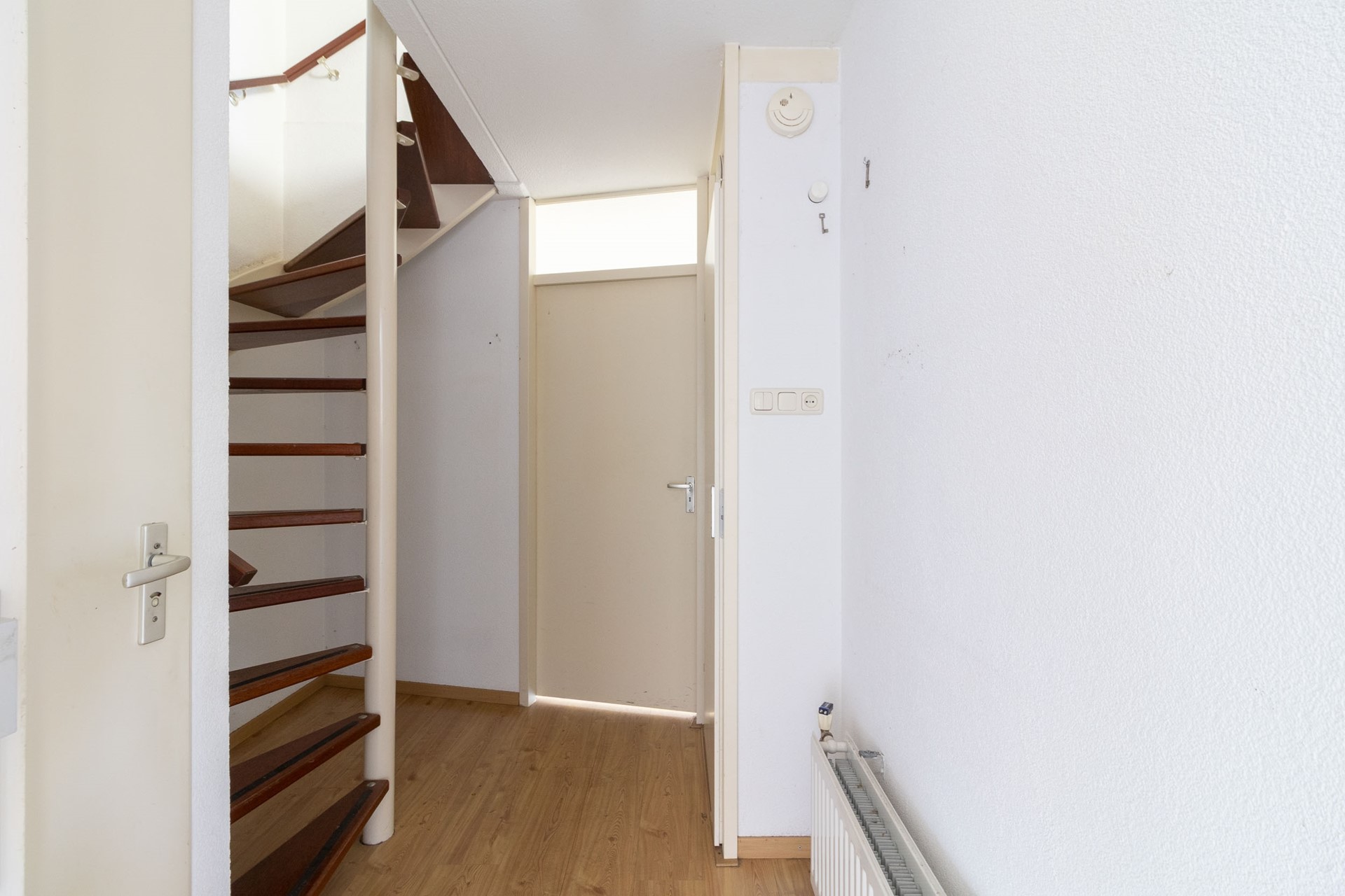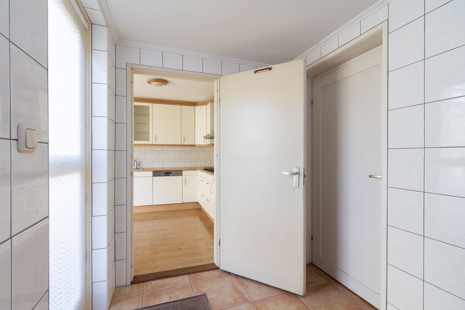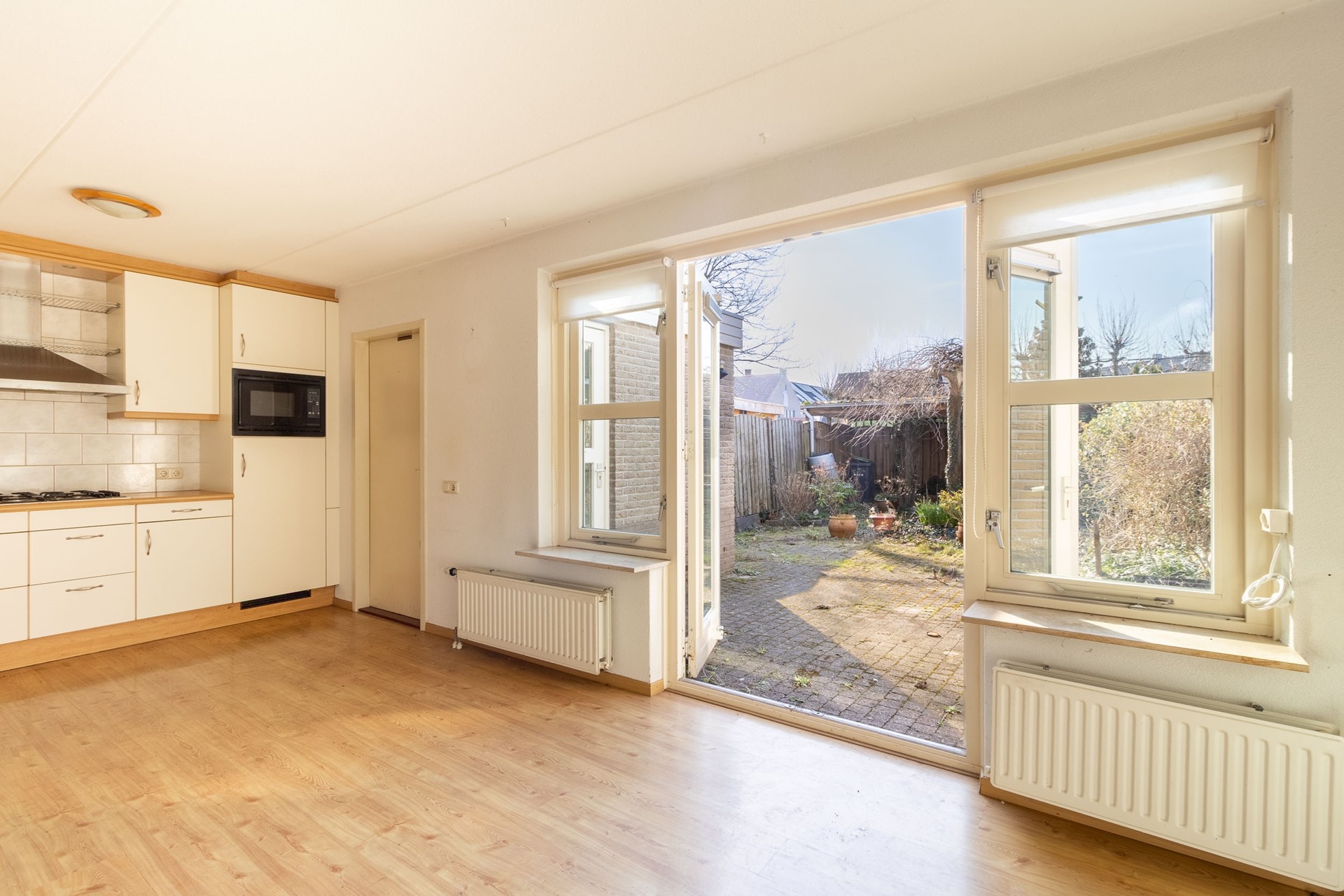Binnen valt direct de prettige, lichte woonkamer op, waar het daglicht mooi naar binnen valt en de ruimte uitnodigt om er iets eigens van te maken. Aansluitend vind je de woonkeuken: een plek waar gekookt, geleefd en samengekomen wordt. Of het nu een doordeweekse avond is of een lange zondag met familie, hier ontstaat vanzelf die gezellige dynamiek waar een huis om draait.