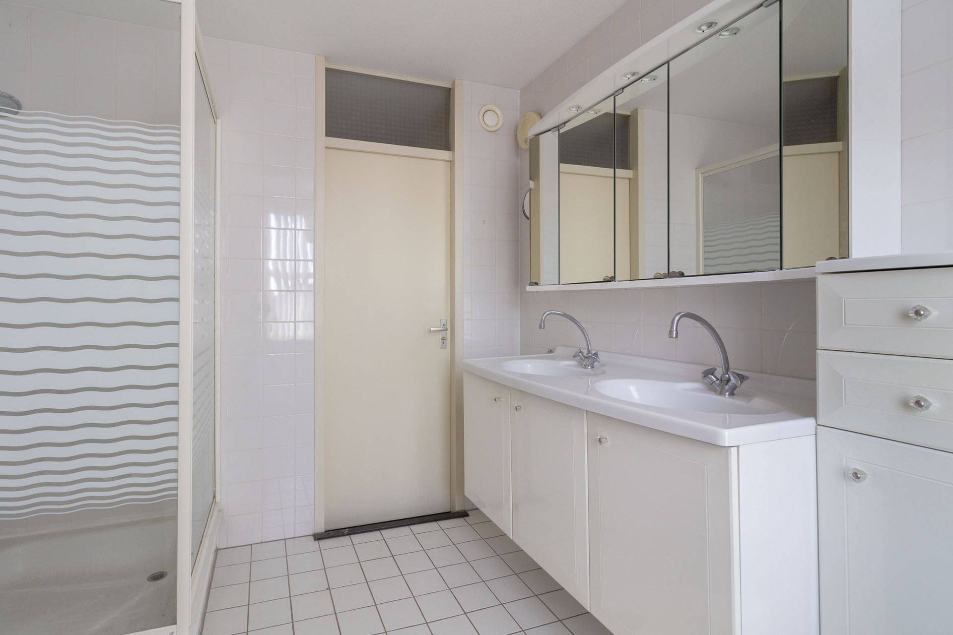 Overloop met toegang tot drie ruime slaapkamers, waarvan één voorzien van vaste kastruimte. De badkamer is compleet ingericht met ligbad, douche, wastafel en toilet. Daarnaast is er extra bergruimte aanwezig en biedt de verdieping volop mogelijkheden voor zowel slapen als werken.