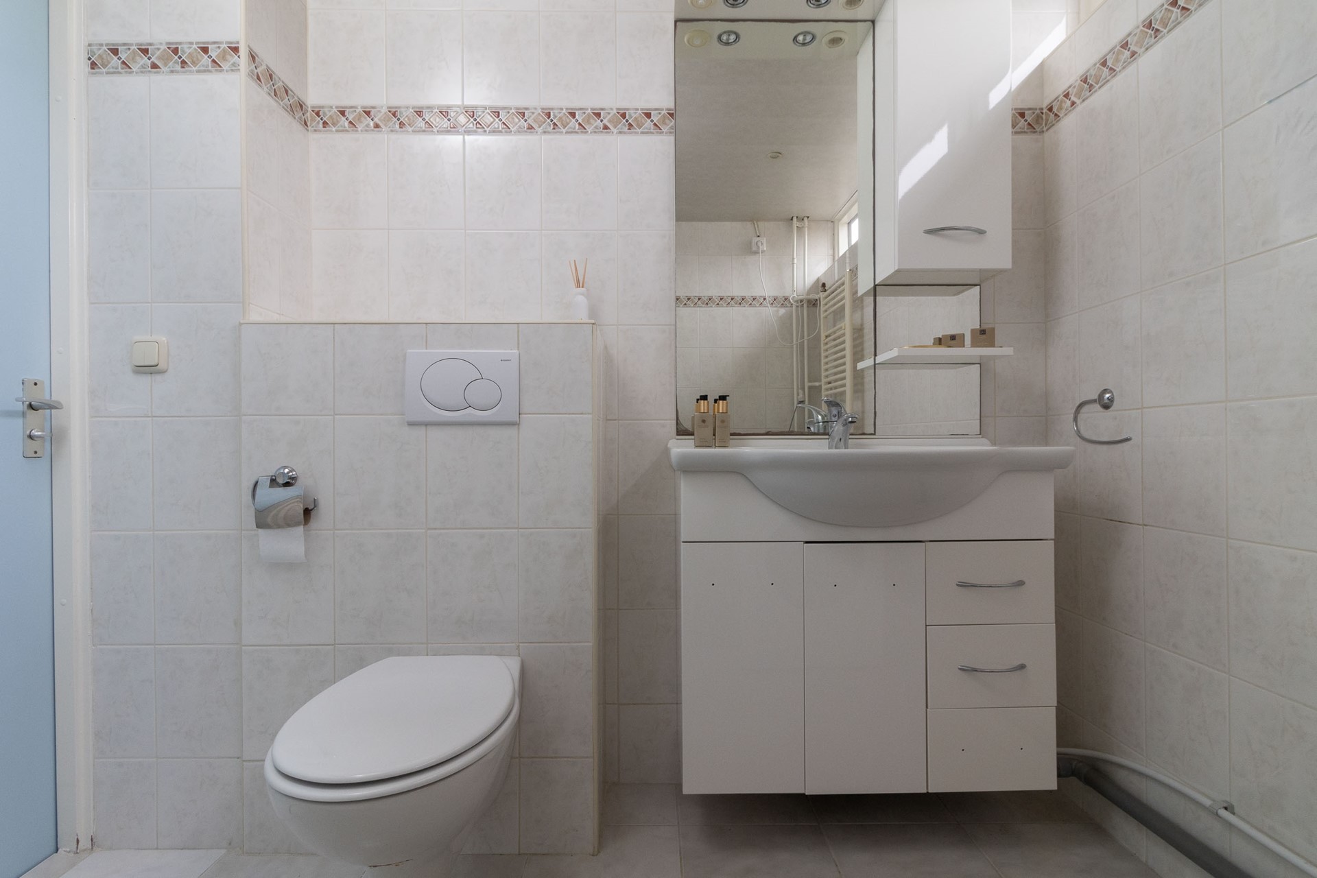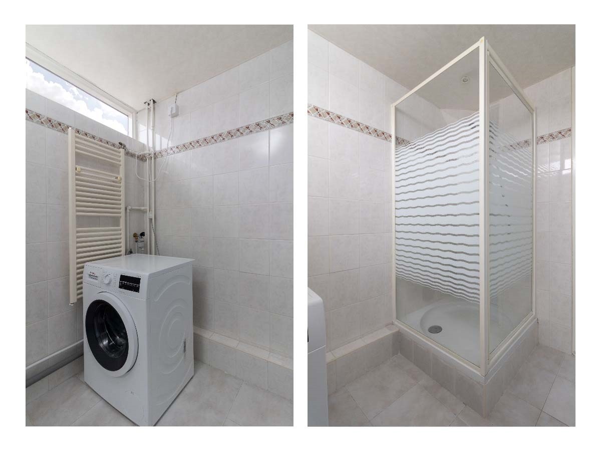 De badkamer is praktisch ingedeeld en voorzien van een douche, toilet en wastafel. De overloop vormt het centrale punt van deze verdieping en geeft toegang tot alle vertrekken.