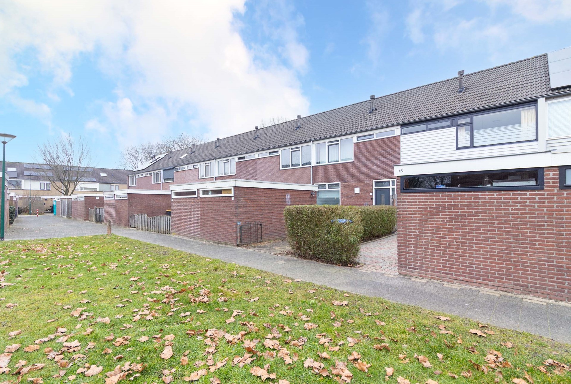 Achterin de tuin bevindt zich een handige achterom, ideaal voor bijvoorbeeld fietsen of het bereiken van de tuin zonder door de woning te hoeven.