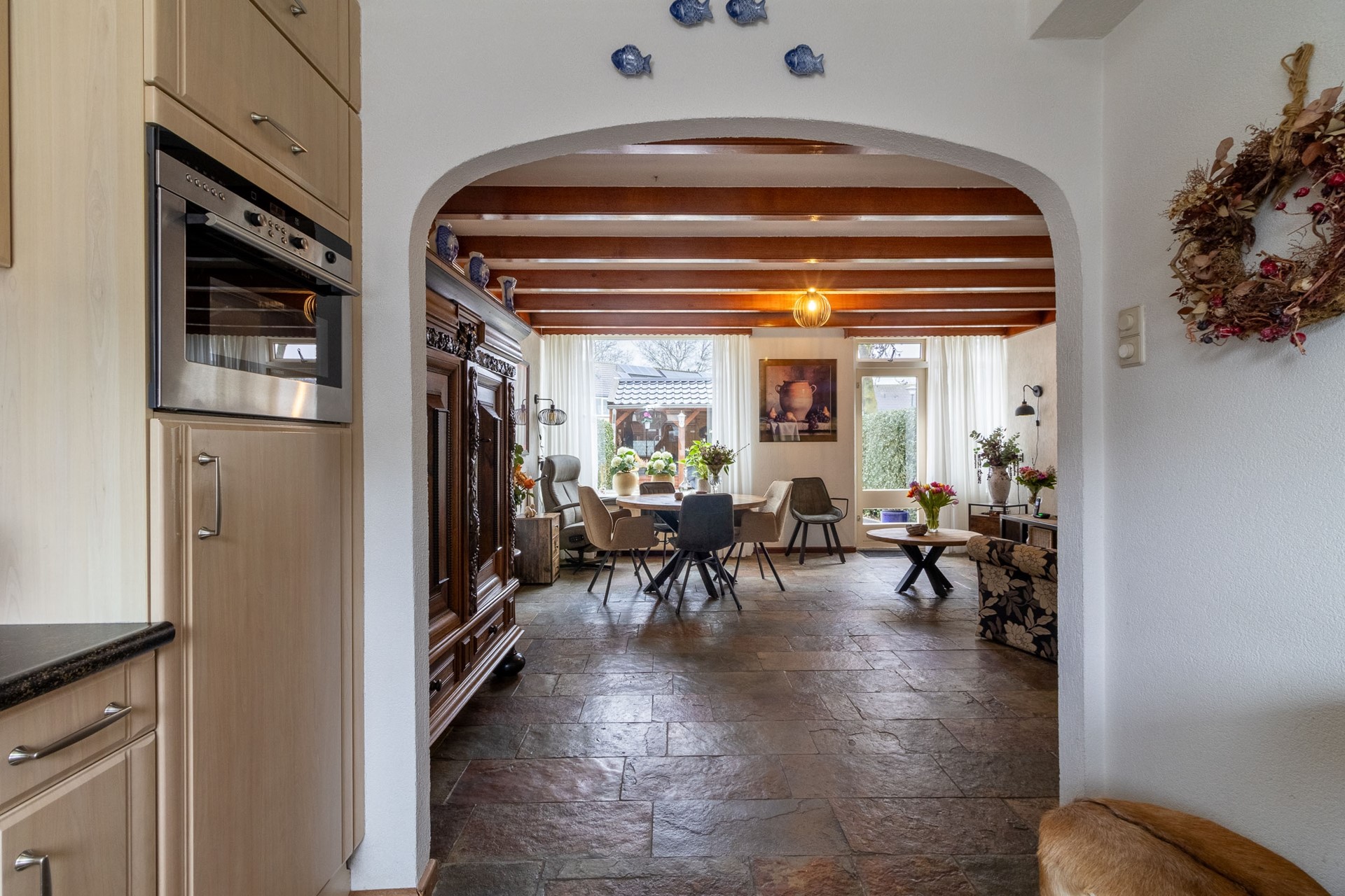 Deze woning is uitstekend onderhouden, waardoor je niet alles tegelijk hoeft aan te pakken. De begane grond is voorzien van comfortabele vloerverwarming en voelt direct prettig aan zodra je binnenstapt. De indeling is praktisch en licht, met een woonkamer waar je moeiteloos een gezellige zithoek en een fijne eettafel kwijt kunt. De keuken sluit daar mooi op aan en biedt alle ruimte om te koken, bij te praten en plannen te maken voor de volgende stap.