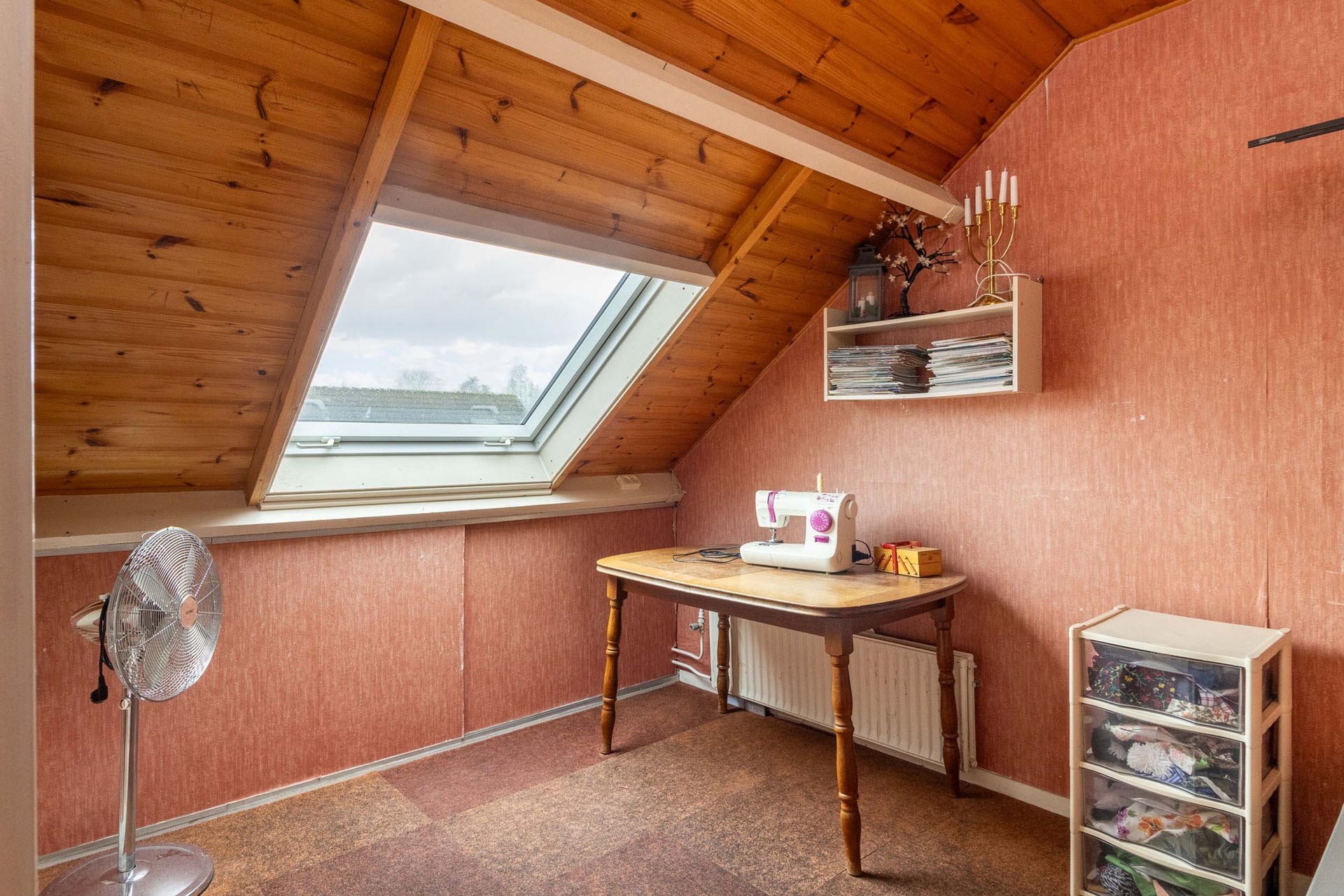 De zolder biedt daarmee een goede combinatie van een extra kamer en volop bergruimte.