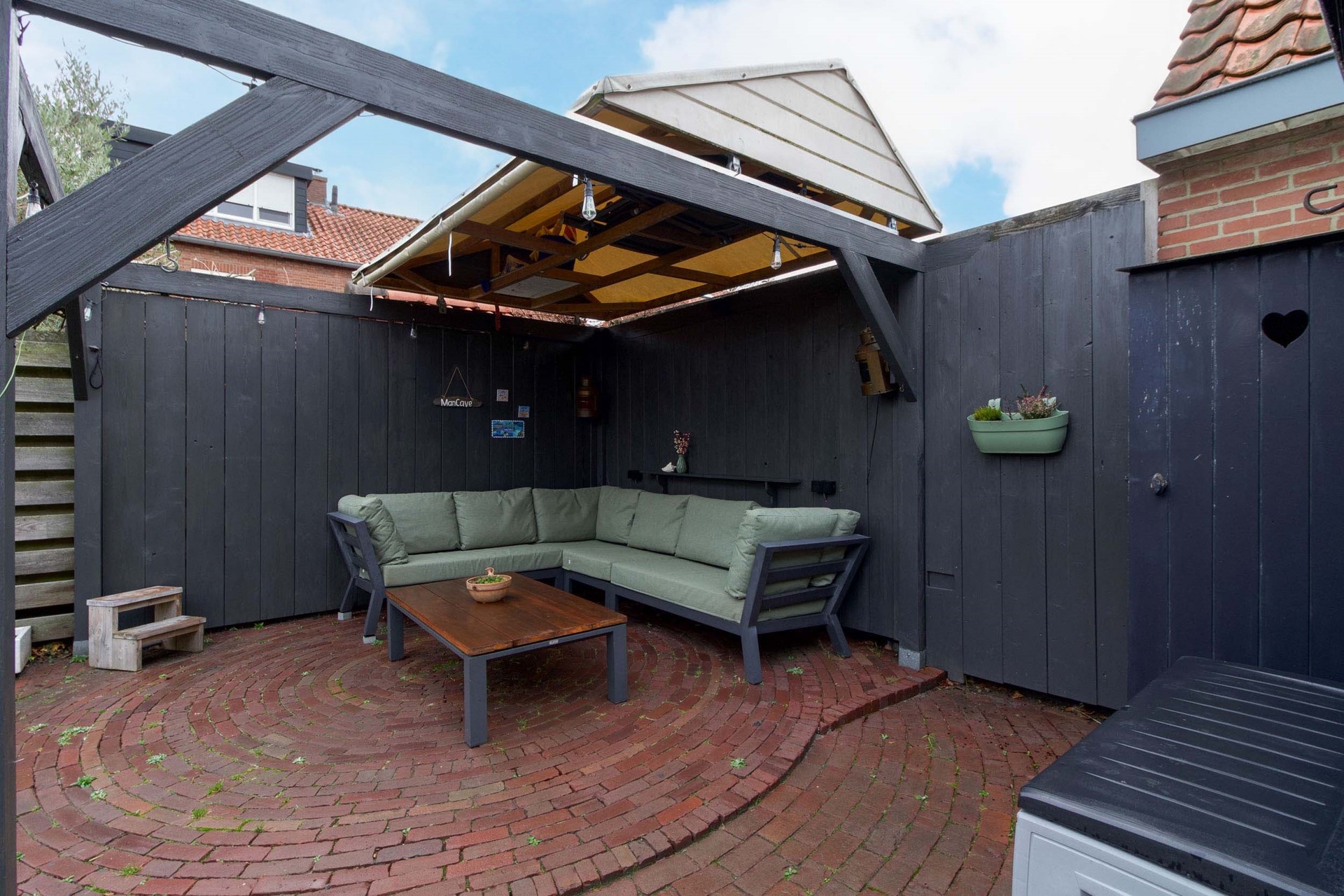 De fraai aangelegde tuin is verzorgd en biedt een prettige combinatie van groen en bestrating. Direct aan de woning bevindt zich een royaal terras, ideaal voor het plaatsen van een eettafel of loungeset. Aansluitend is er een sfeervolle overkapping met zitgedeelte, waardoor u hier vrijwel het hele jaar door beschut kunt genieten van het buitenleven.