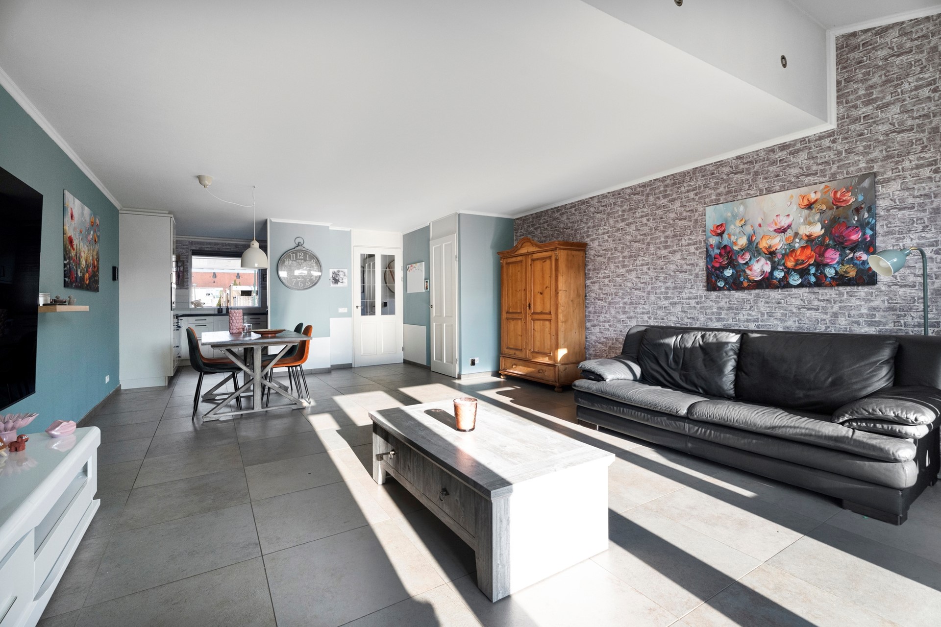 De woonkamer strekt zich royaal uit en biedt volop plek voor een comfortabele zithoek aan de tuinzijde, met voldoende ruimte voor een goede zithoek bij de keuken. Het geheel voelt licht en luchtig, met een prettige lichtinval gedurende de dag.