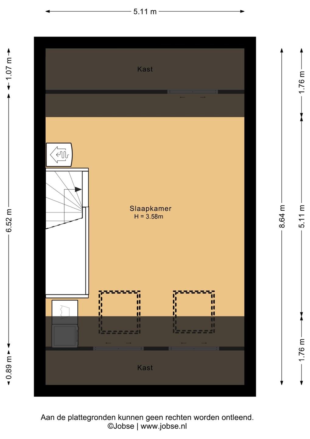 Via de vaste trap bereikt u de zolderverdieping. Deze open ruimte kenmerkt zich door de nokhoogte van ca. 3,58 m, wat zorgt voor een ruimtelijk gevoel.