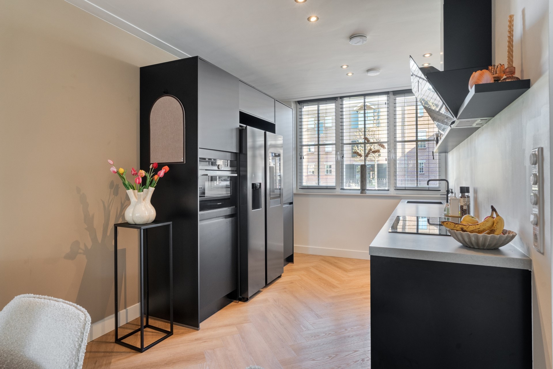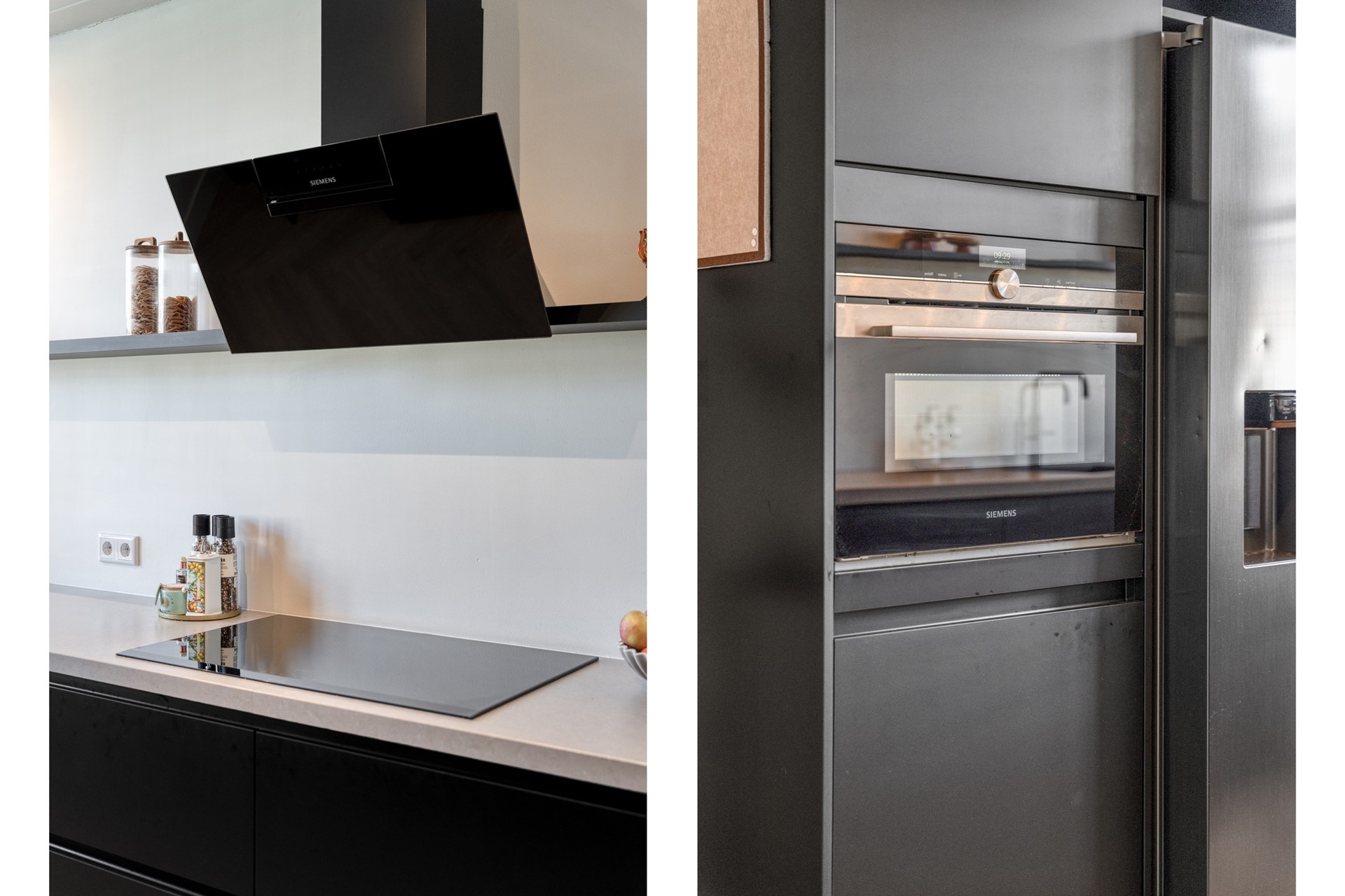 De keuken bevindt zich aan de voorzijde van de woning en is opgesteld in een rechte wandopstelling. De begane grond beschikt daarmee over een logische en functionele indeling, met de leefruimte centraal in de woning.