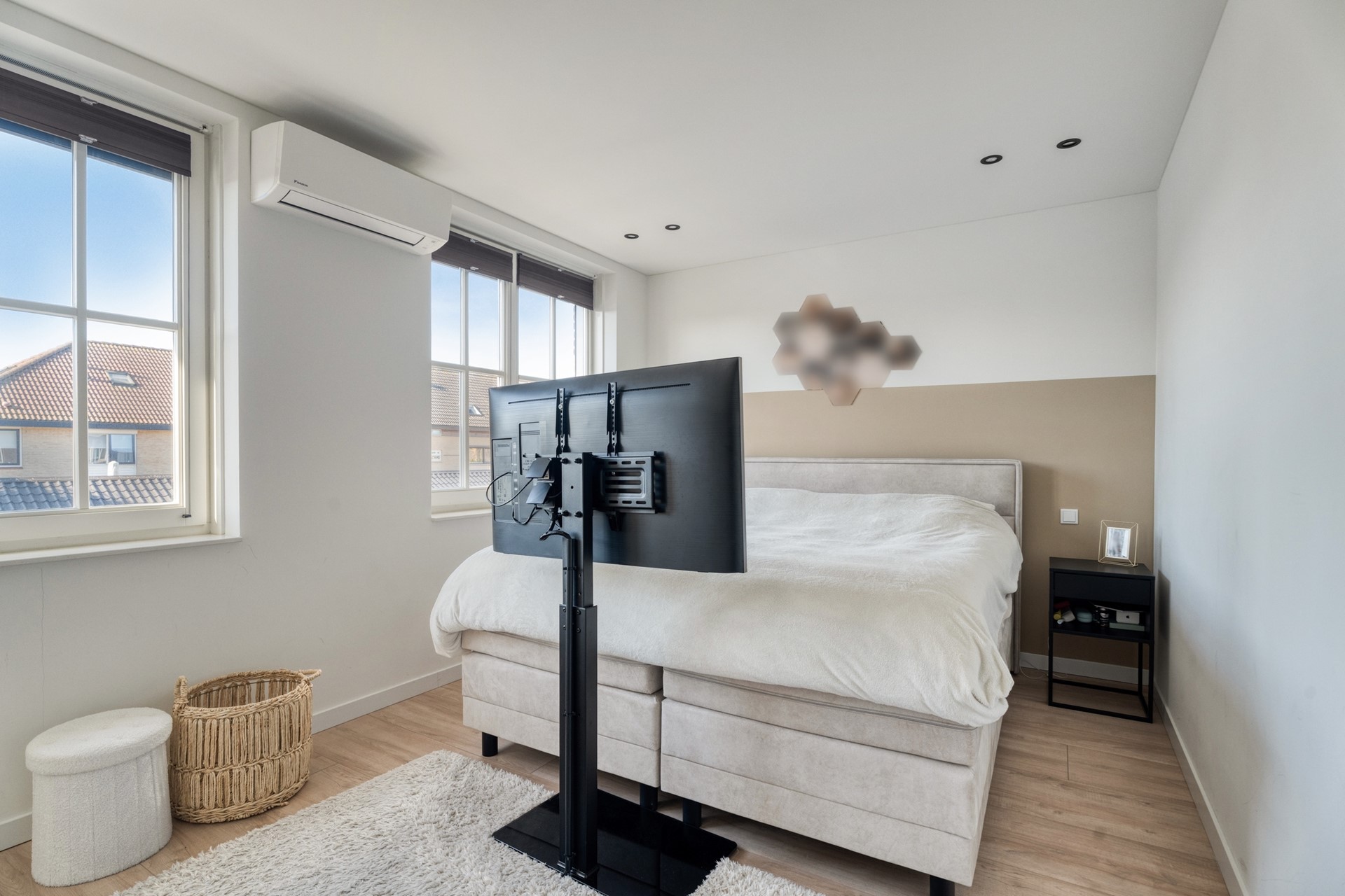 Via de overloop bereik je twee slaapkamers en de badkamer. De royale hoofdslaapkamer ligt aan de voorzijde van de woning en is voorzien van airconditioning. Ideaal om het ook tijdens warme dagen aangenaam koel te houden. De tweede slaapkamer bevindt zich aan de achterzijde.