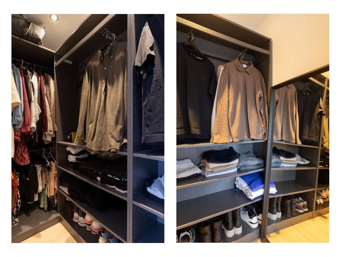 De badkamer is voorzien van een douche, dubbele wastafel en toilet. Daarnaast is er een praktische inloopkast aanwezig.