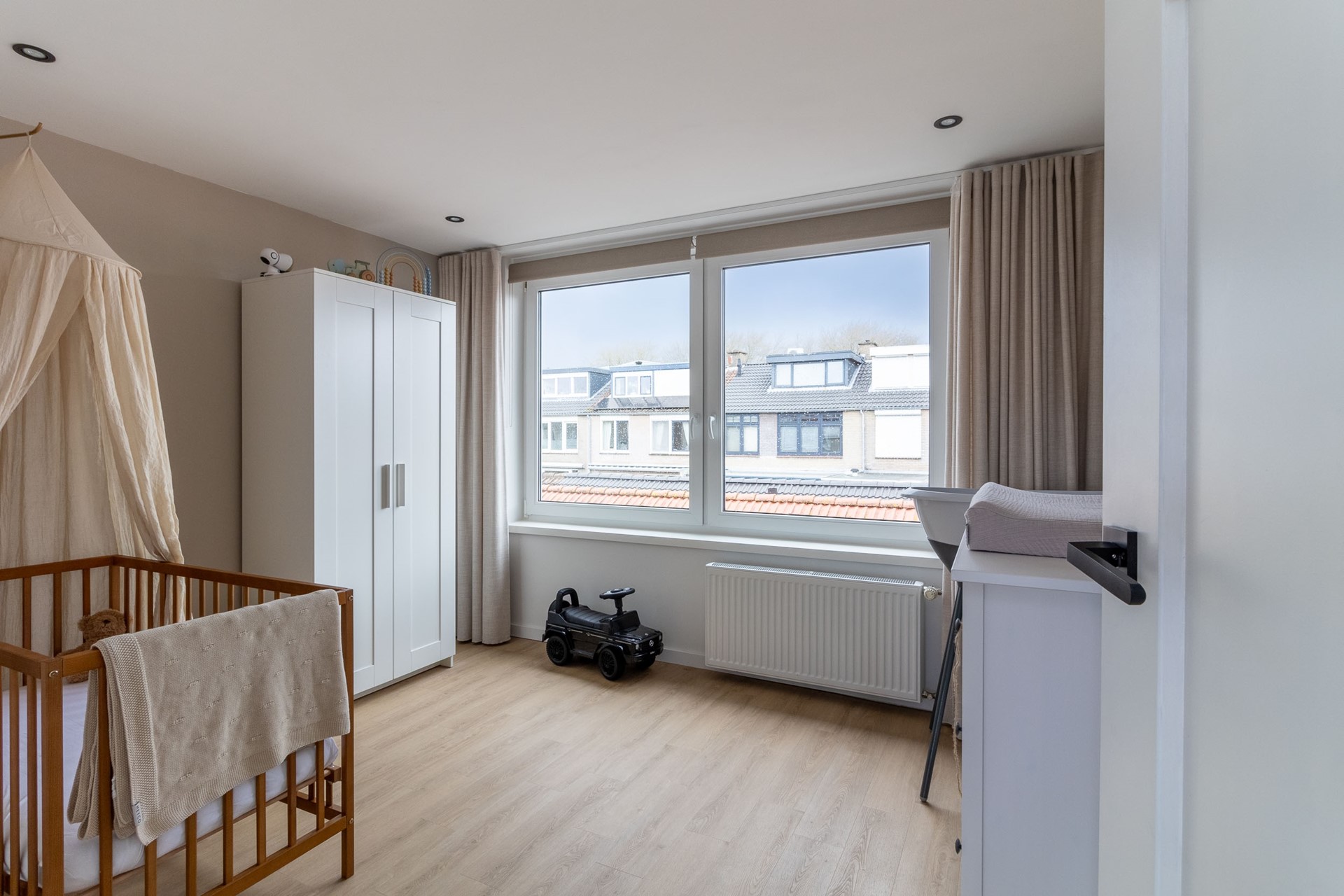 Ook boven is de woning verrassend compleet. De master bedroom is royaal van opzet en uitgevoerd met een inloopkast en airco, wat het geheel net dat extra stukje comfort geeft. Ook hier merk je dat er goed is nagedacht over gebruiksgemak en afwerking. Aan de achterzijde ligt bovendien een leuke tuin met een flinke berging, waardoor je ook buiten beschikt over een fijne en praktische ruimte.