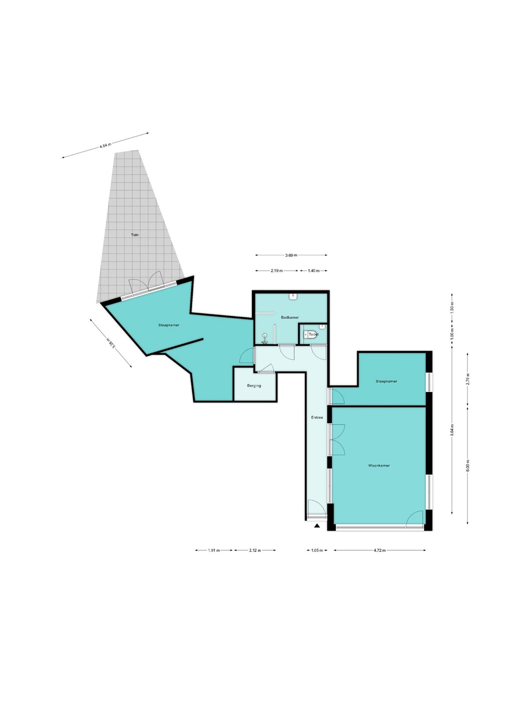 Via de entree bereikt u de ruime woonkamer met veel lichtinval. Aangrenzend bevindt zich een slaapkamer die ook ideaal is als werk- of logeerkamer. Vanuit de hal zijn de badkamer, het separate toilet en de berging toegankelijk. Aan de achterzijde ligt een tweede, royale slaapkamer met openslaande deuren naar de patio.