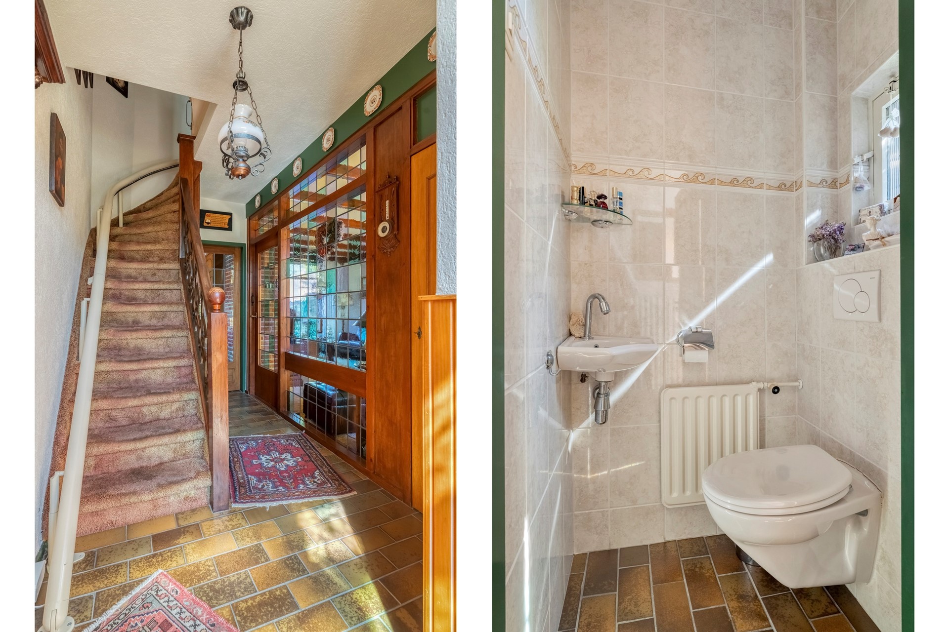 De centrale hal biedt tevens toegang tot een handige trapkast en de trapopgang naar de verdieping.