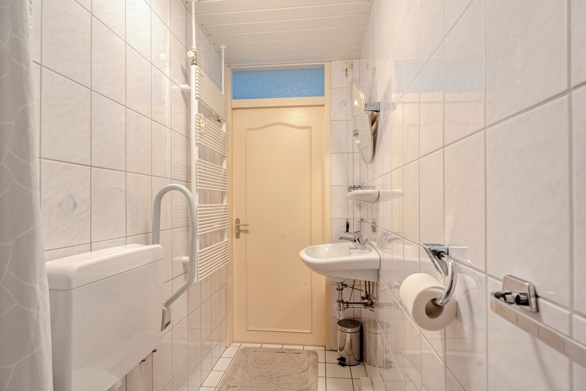 De centraal gelegen badkamer is voorzien van een douche, toilet en wastafel.