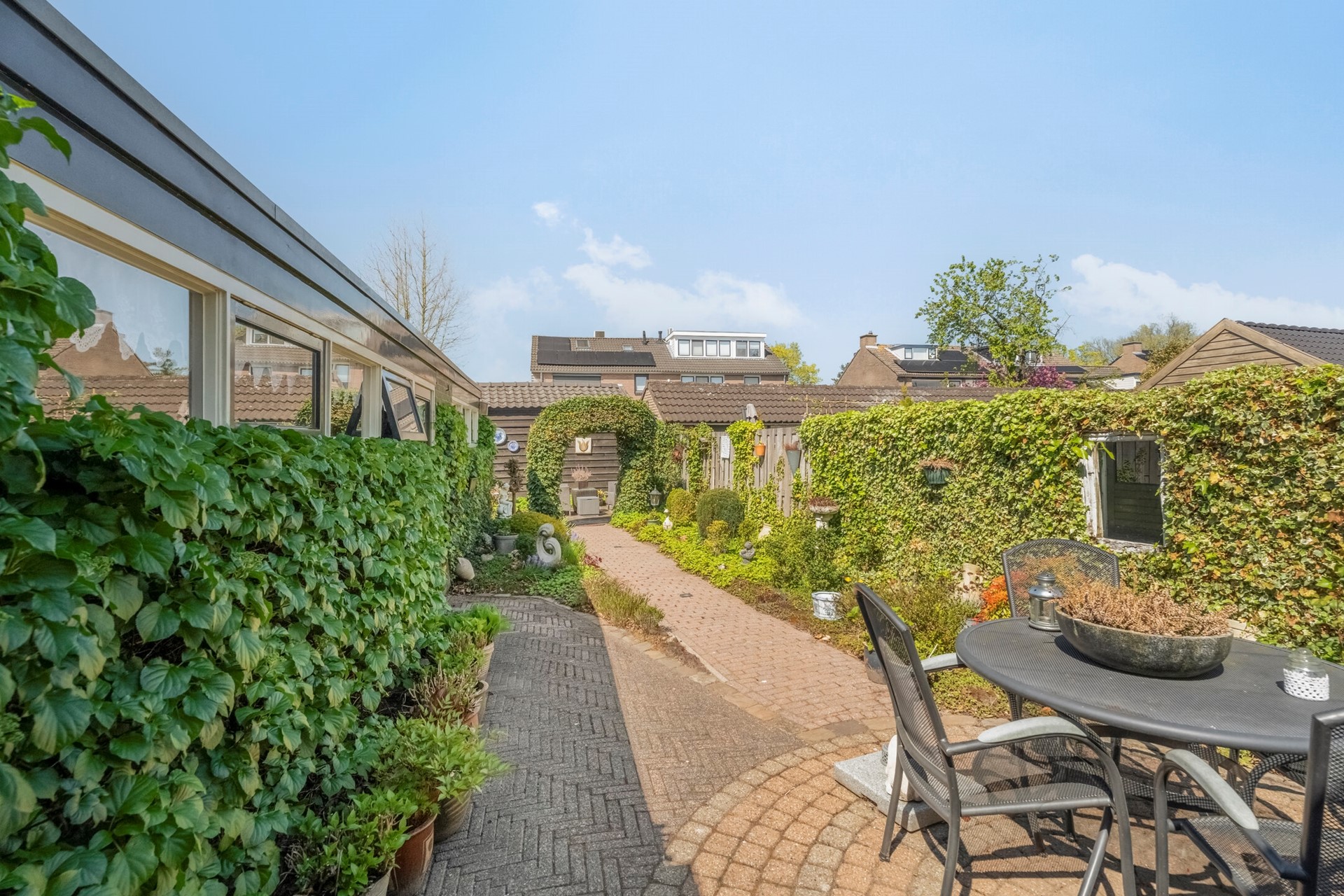 De woning beschikt over een bijzonder diepe achtertuin van ruim 20 meter, gelegen op het westen. Hierdoor kunt u hier optimaal genieten van de middag- en avondzon. De tuin is verzorgd aangelegd met een combinatie van groen, bestrating en meerdere terrassen, waardoor er altijd wel een fijne plek in de zon of schaduw te vinden is.