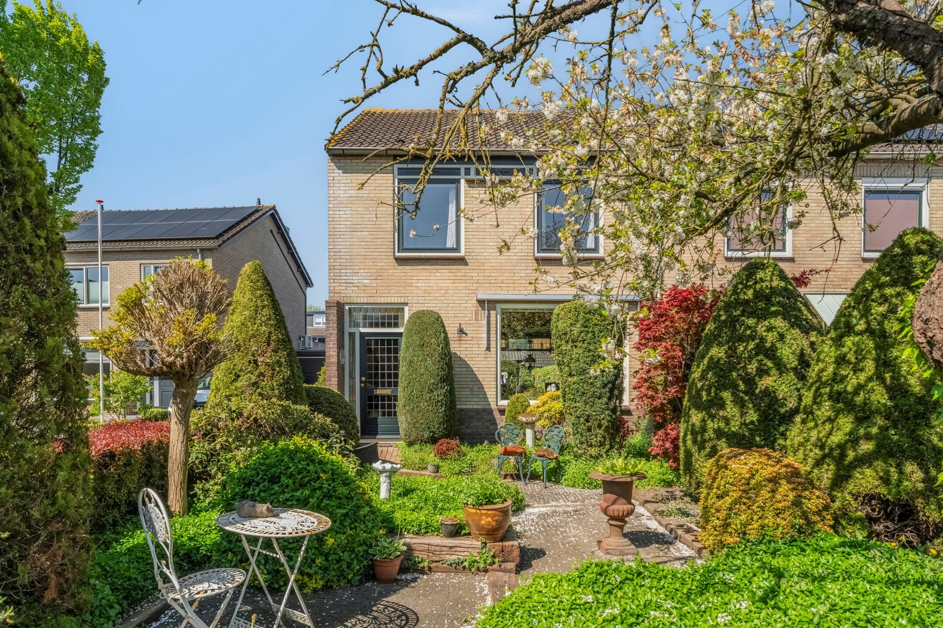 De woning beschikt over een zeer royale voortuin, gelegen op het oosten, waar u heerlijk kunt genieten van de ochtend- en vroege middagzon. De tuin is fraai aangelegd met een gevarieerde beplanting, volwassen bomen en sierlijke hagen, wat zorgt voor een groene en verzorgde uitstraling.